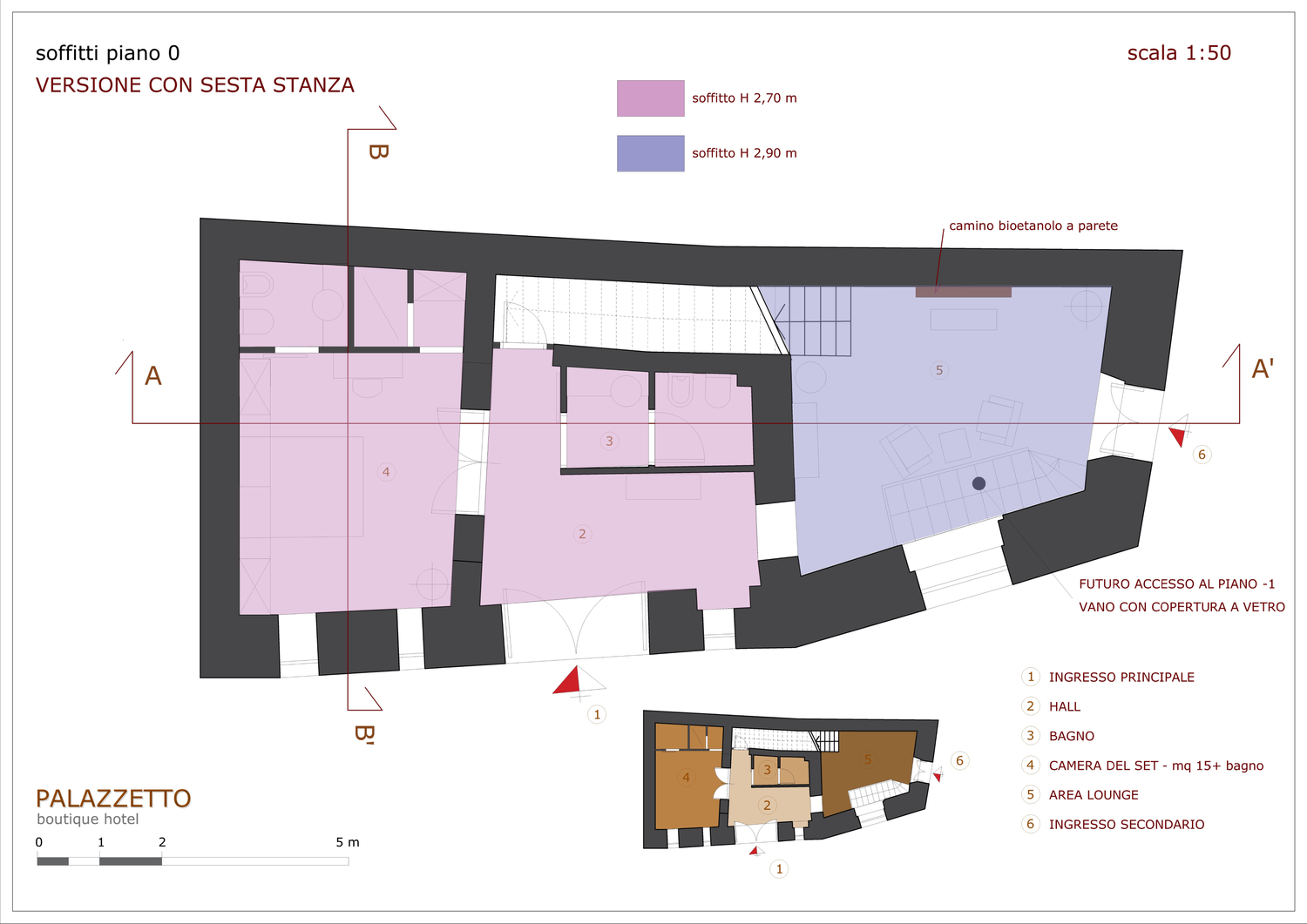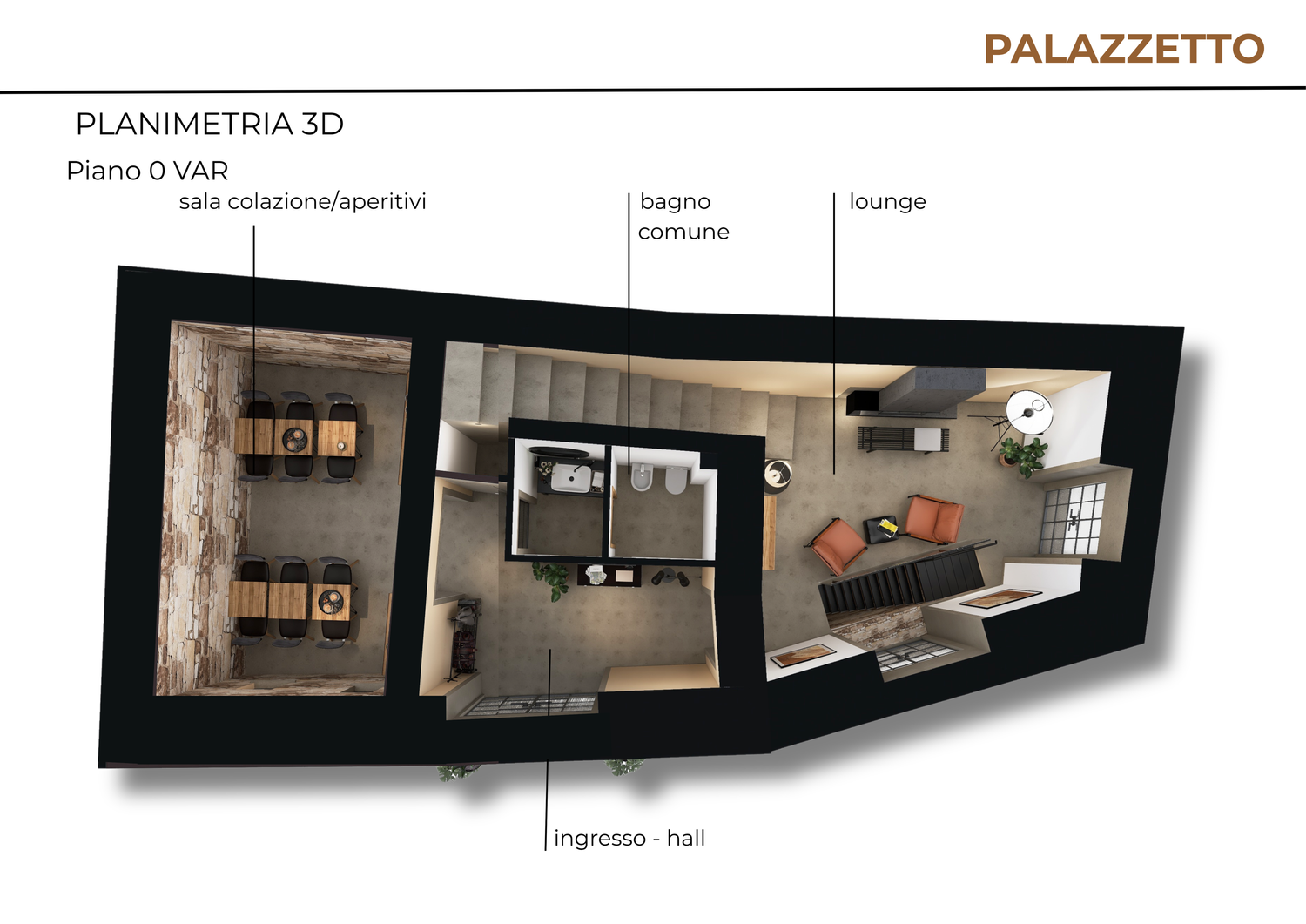 • zona ingresso/accoglienza, senza postazione fissa, coerente con il carattere esclusivo del boutique hotel;