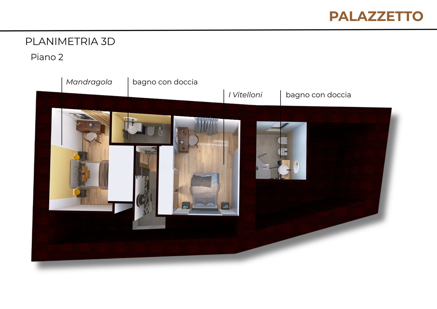 • Camera “I Vitelloni”: circa 14 m² + bagno