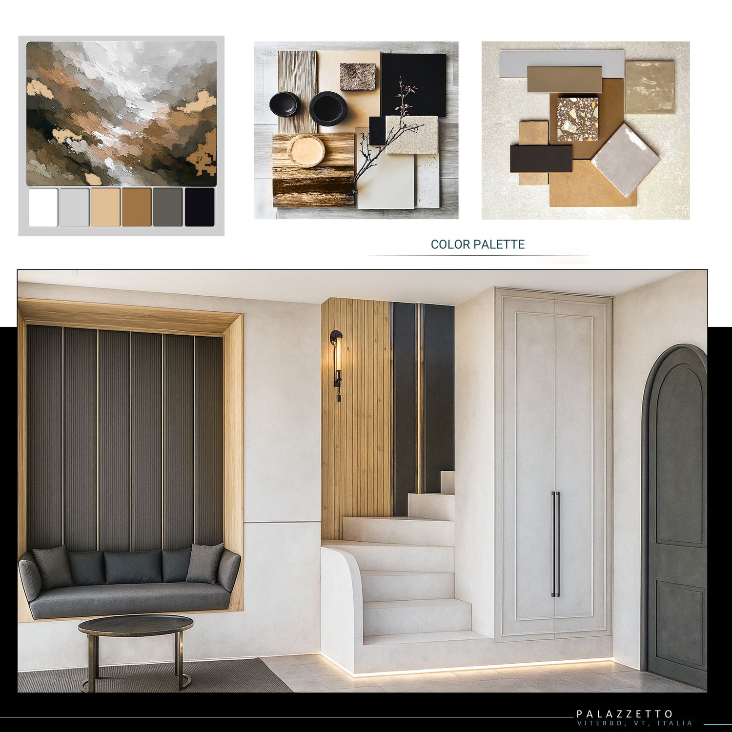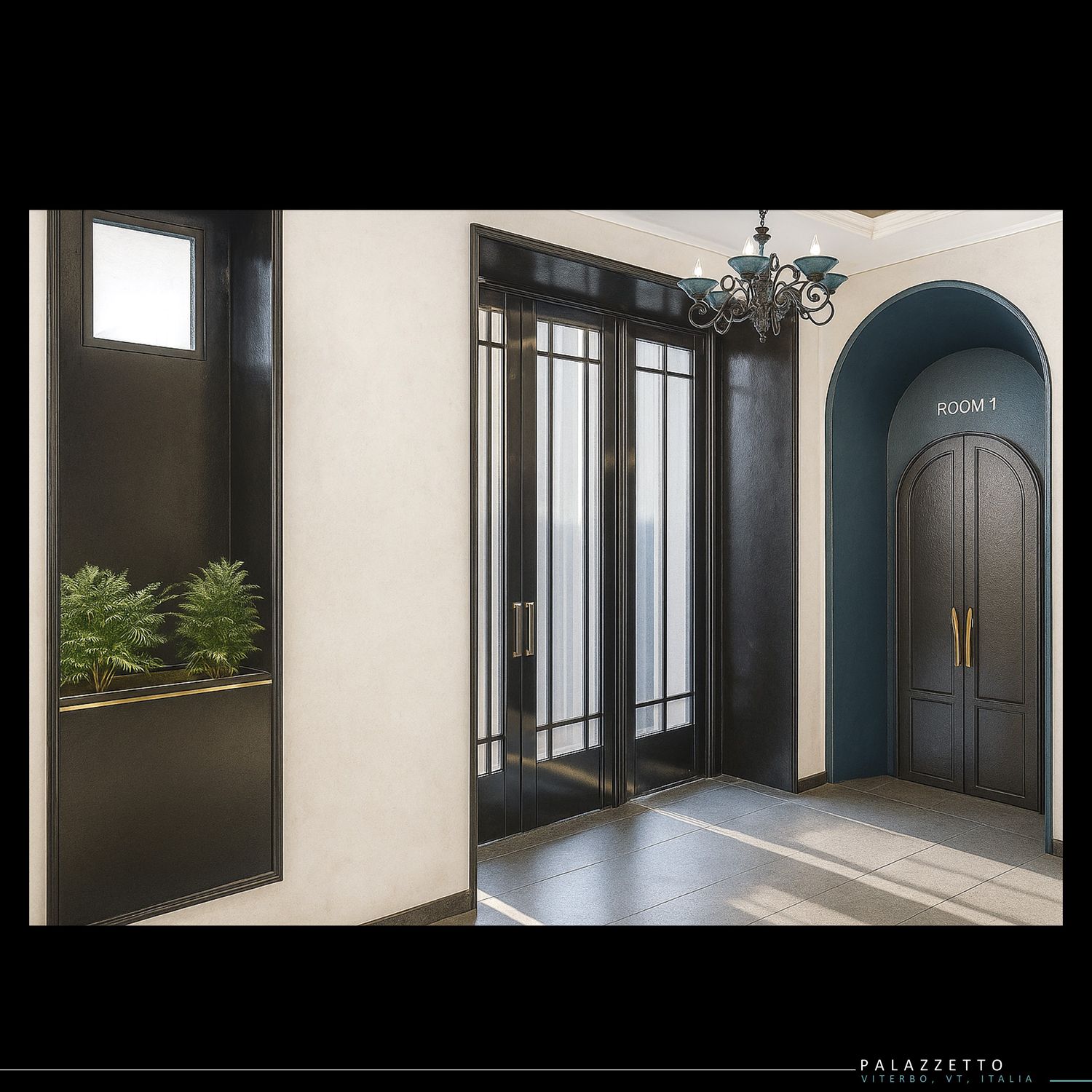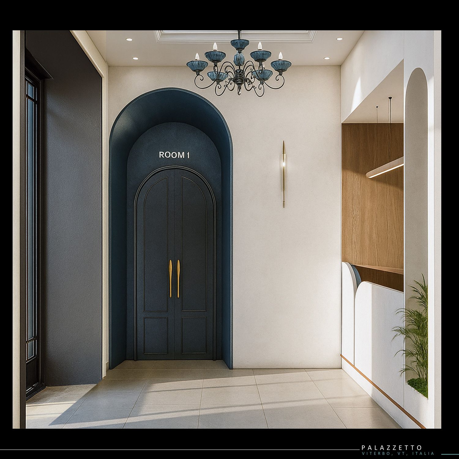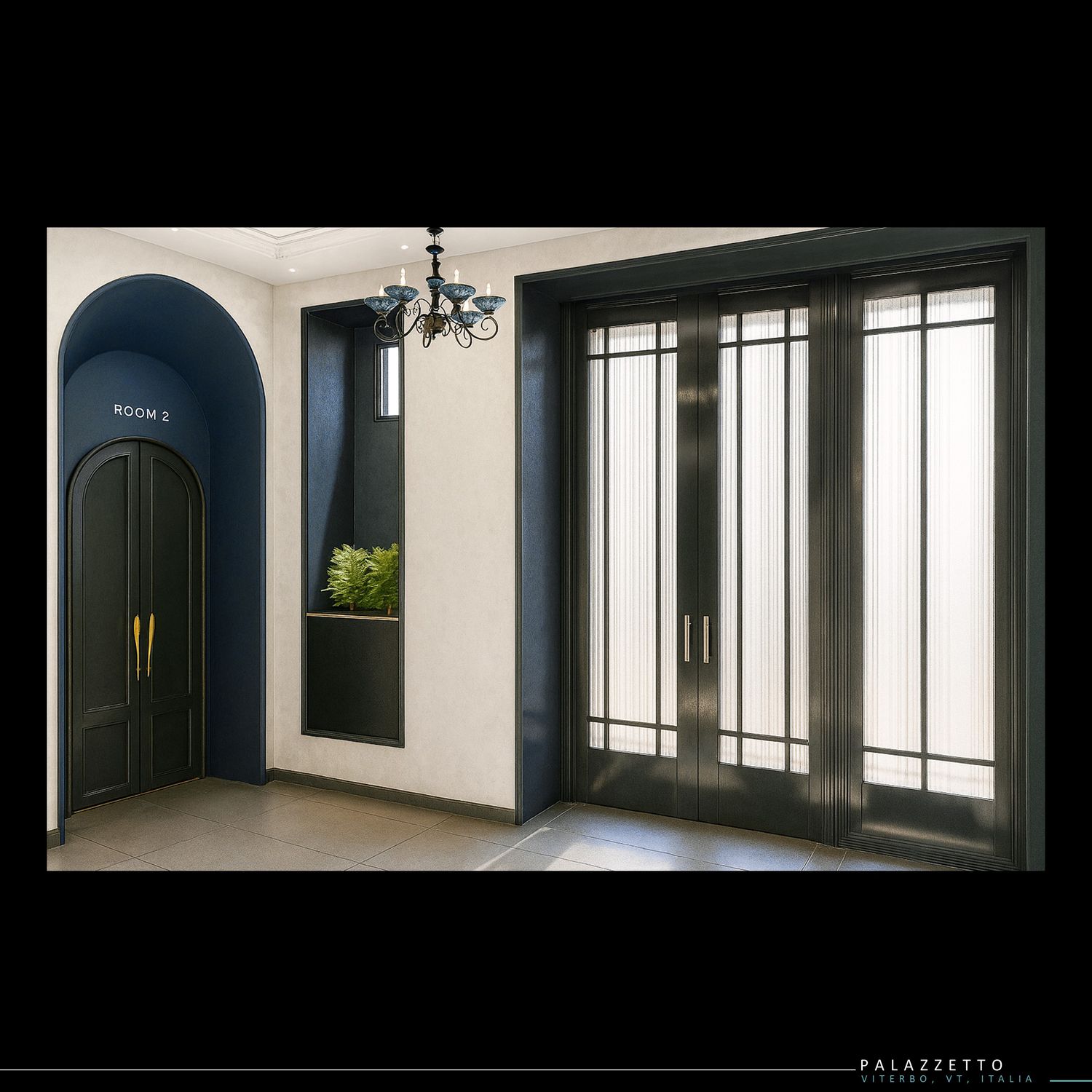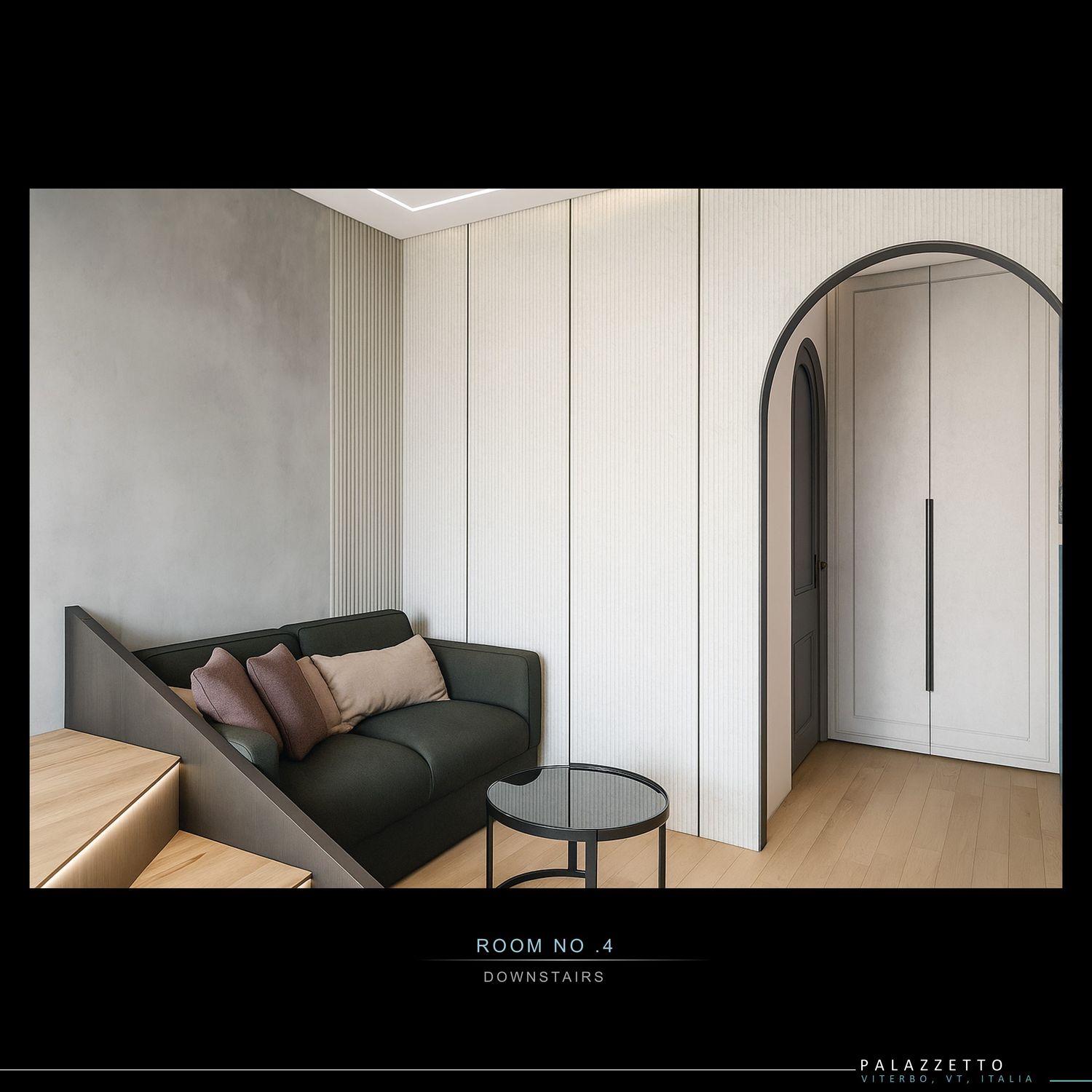 Per quanto riguarda gli interni, il nostro approccio progettuale si basa sulla creazione di ambienti rilassanti, minimalisti e pienamente coerenti con l’identità storica dell’immobile. Inoltre, il Suo interesse per l’inserimento di riferimenti cinematografici — in considerazione dell’attività della proprietà nel settore del cinema — è stato pienamente considerato e integrato negli aspetti visivi, grafici e di illuminazione, prevedendo anche la possibilità di ulteriori sviluppi futuri.