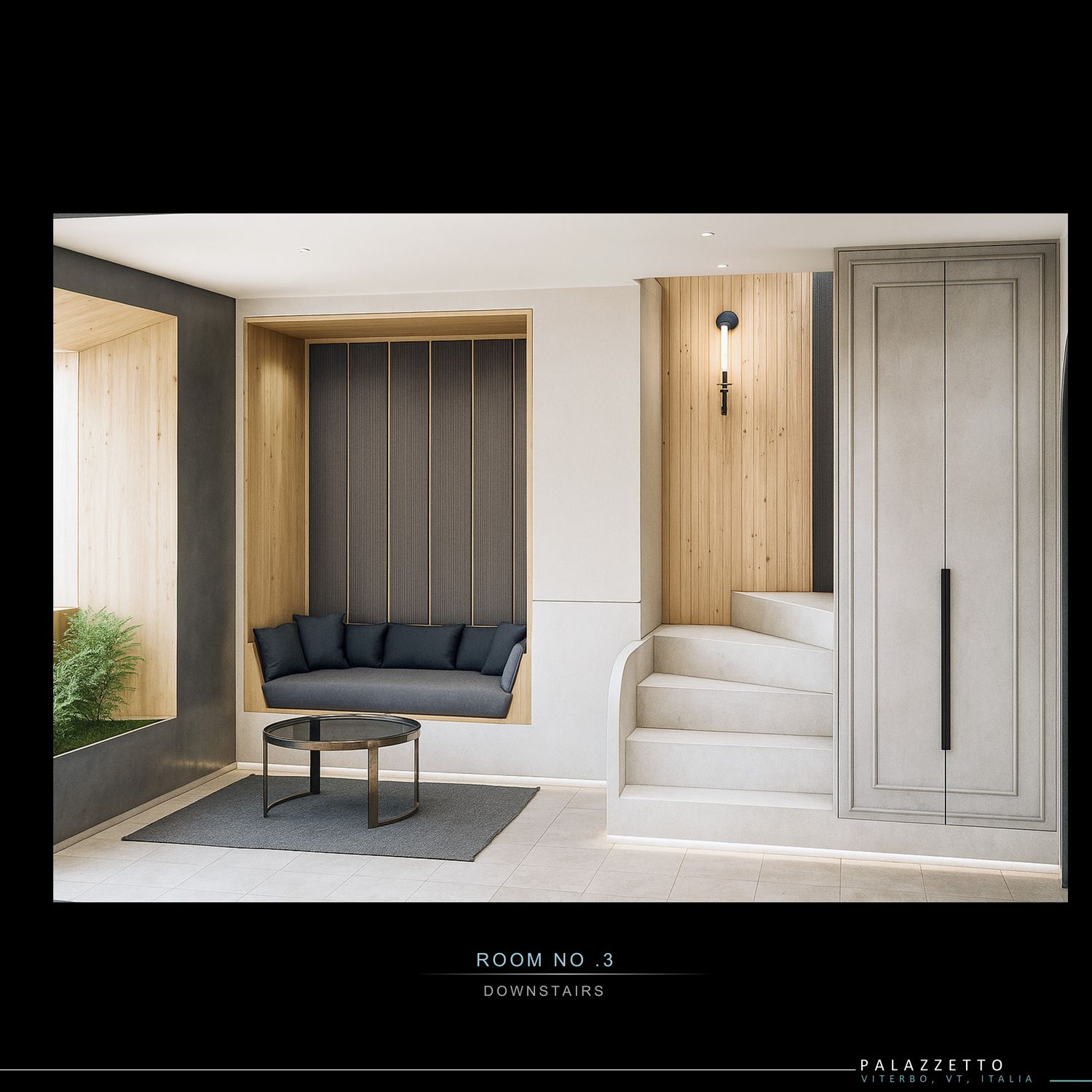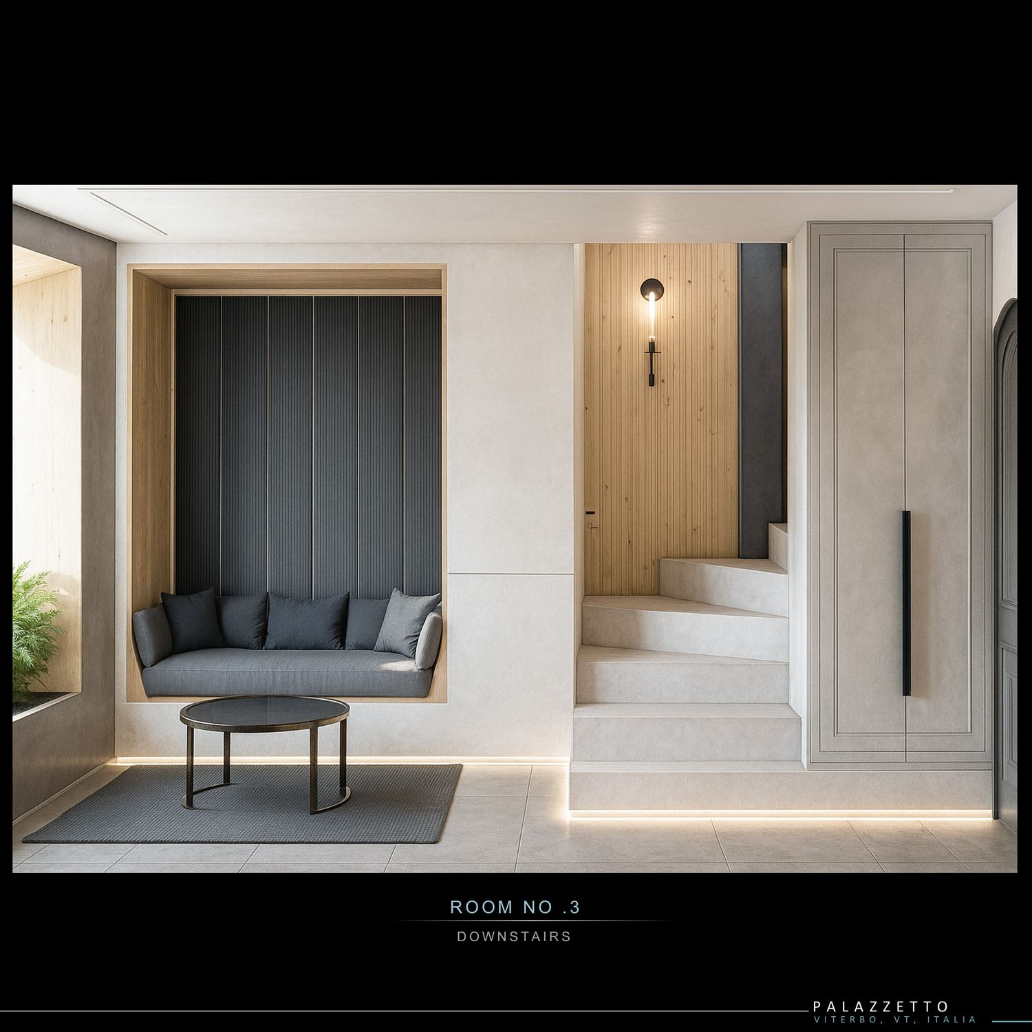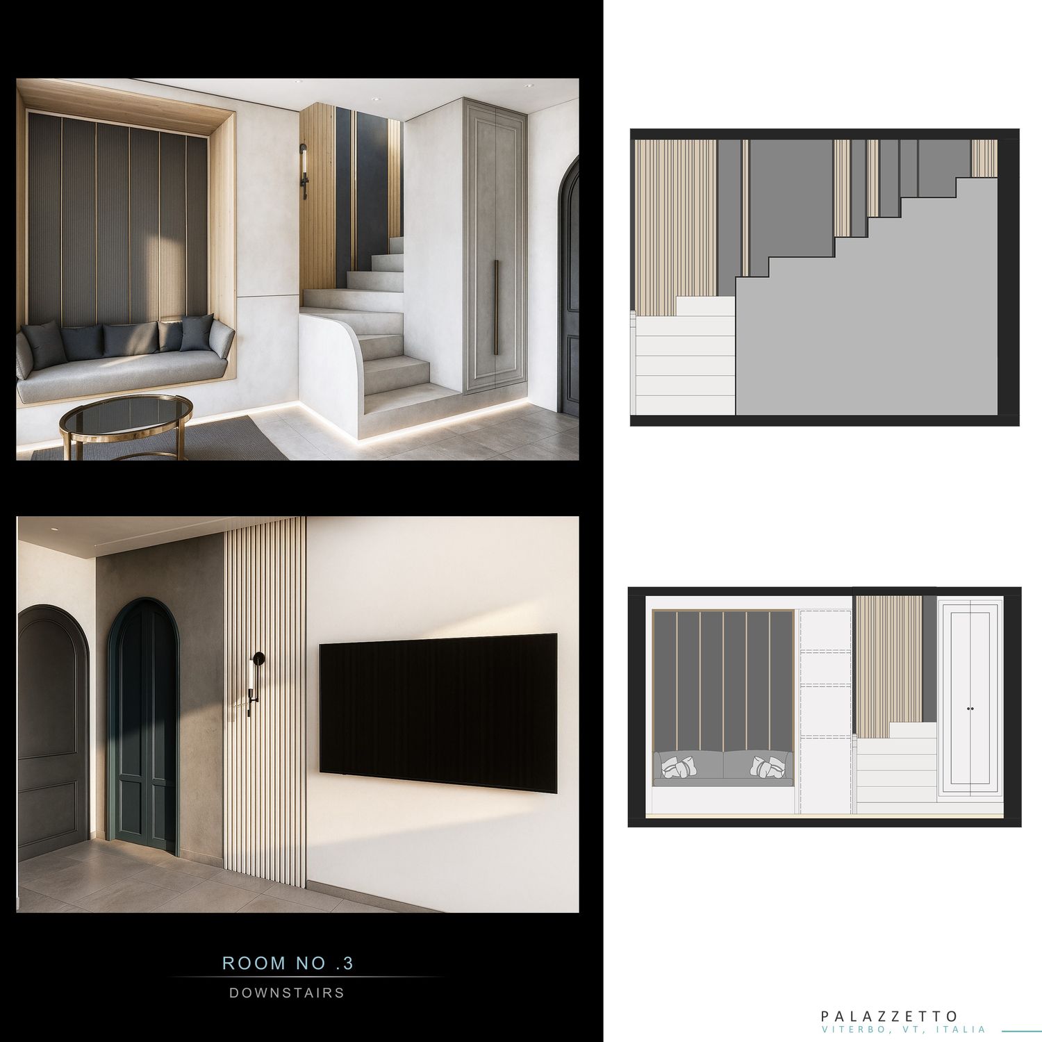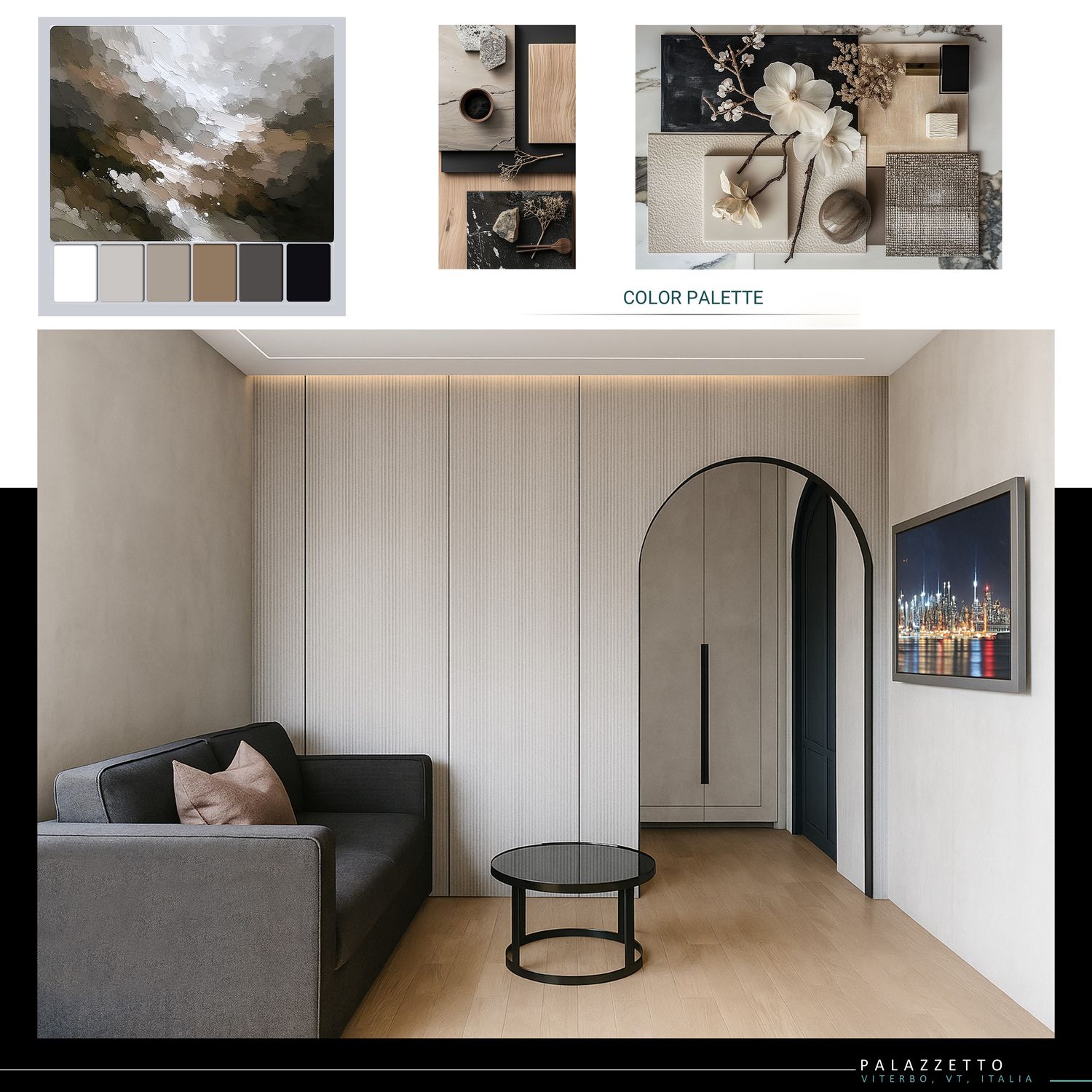 Per quanto riguarda gli interni, il nostro approccio progettuale si basa sulla creazione di ambienti rilassanti, minimalisti e pienamente coerenti con l’identità storica dell’immobile. Inoltre, il Suo interesse per l’inserimento di riferimenti cinematografici — in considerazione dell’attività della proprietà nel settore del cinema — è stato pienamente considerato e integrato negli aspetti visivi, grafici e di illuminazione, prevedendo anche la possibilità di ulteriori sviluppi futuri.