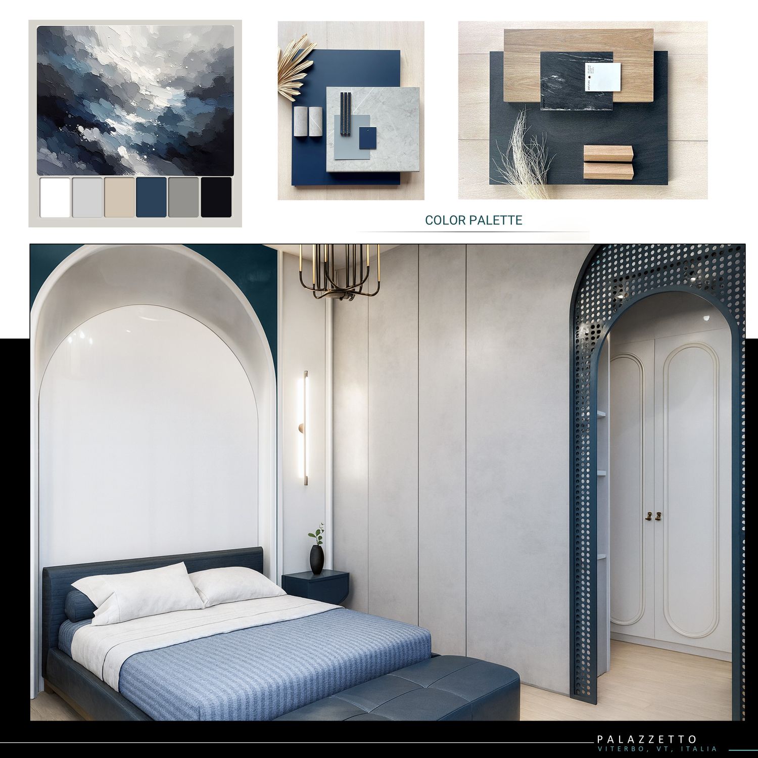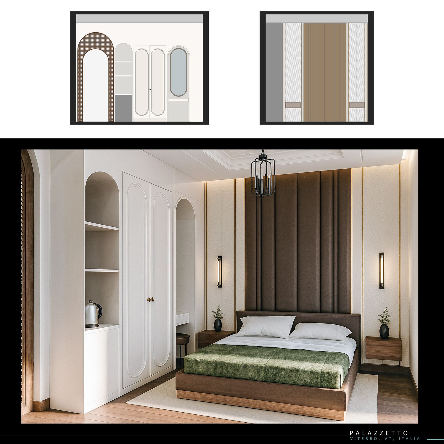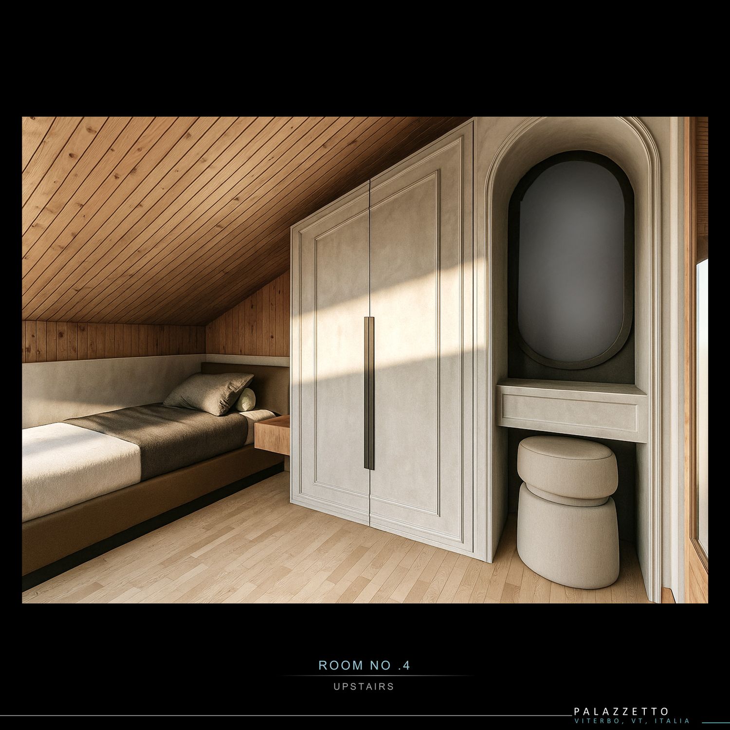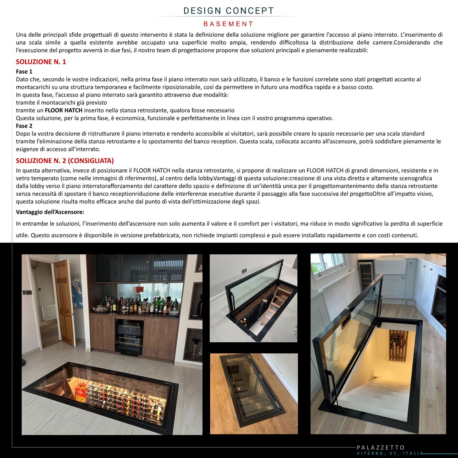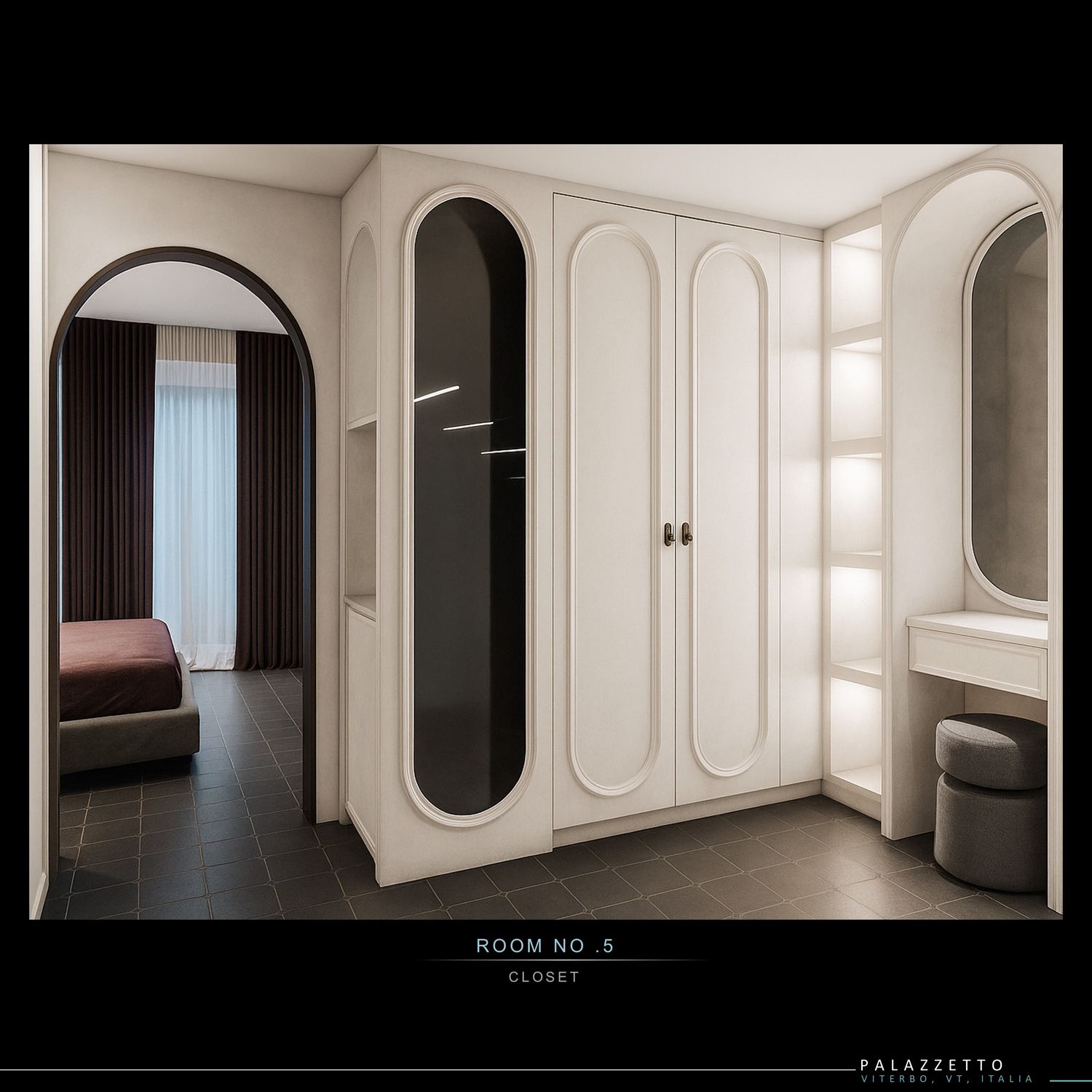 Per quanto riguarda gli interni, il nostro approccio progettuale si basa sulla creazione di ambienti rilassanti, minimalisti e pienamente coerenti con l’identità storica dell’immobile. Inoltre, il Suo interesse per l’inserimento di riferimenti cinematografici — in considerazione dell’attività della proprietà nel settore del cinema — è stato pienamente considerato e integrato negli aspetti visivi, grafici e di illuminazione, prevedendo anche la possibilità di ulteriori sviluppi futuri.