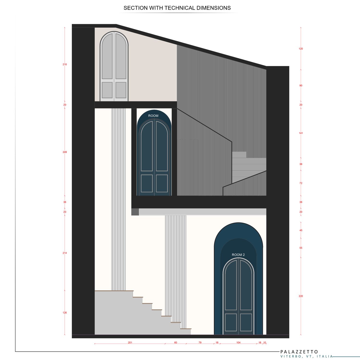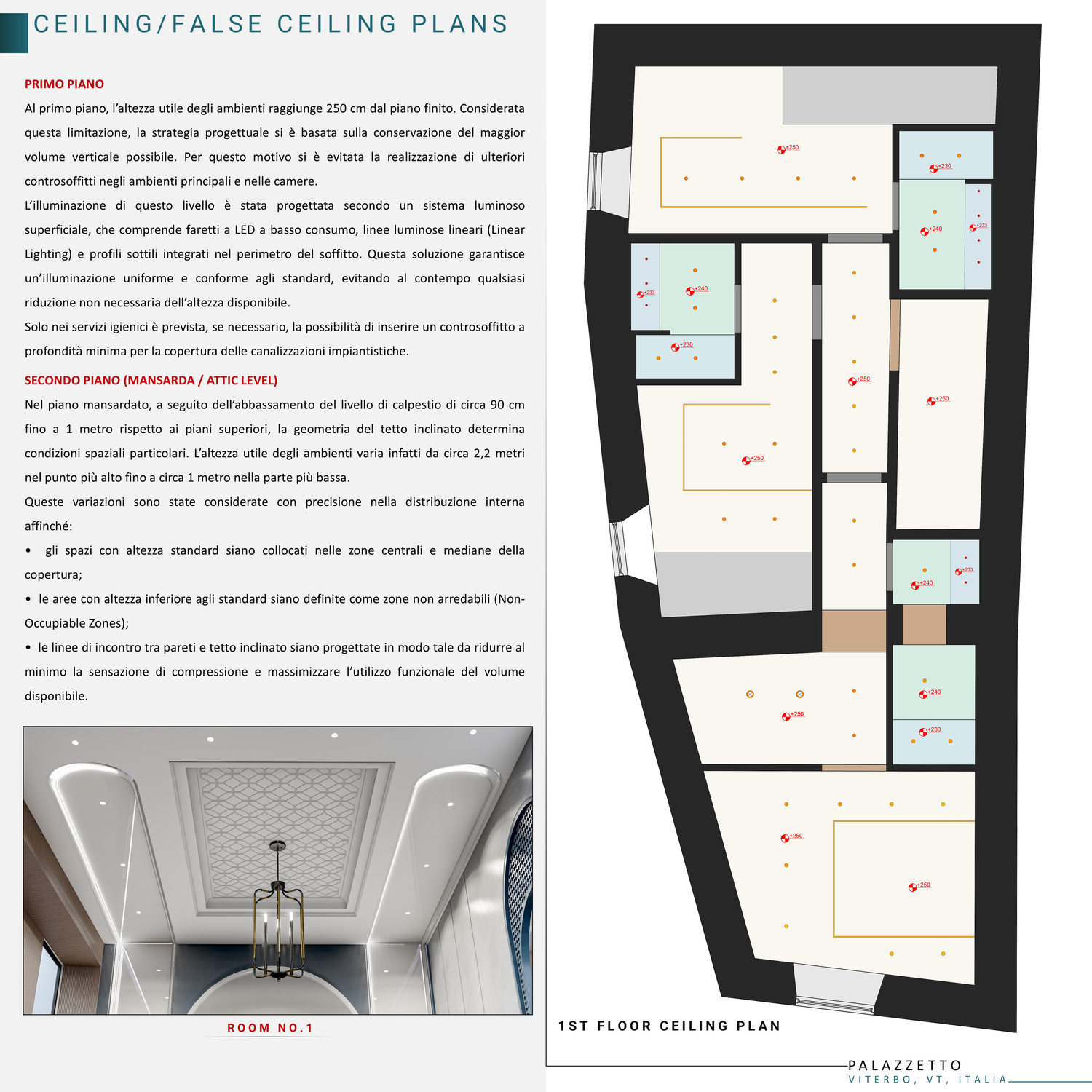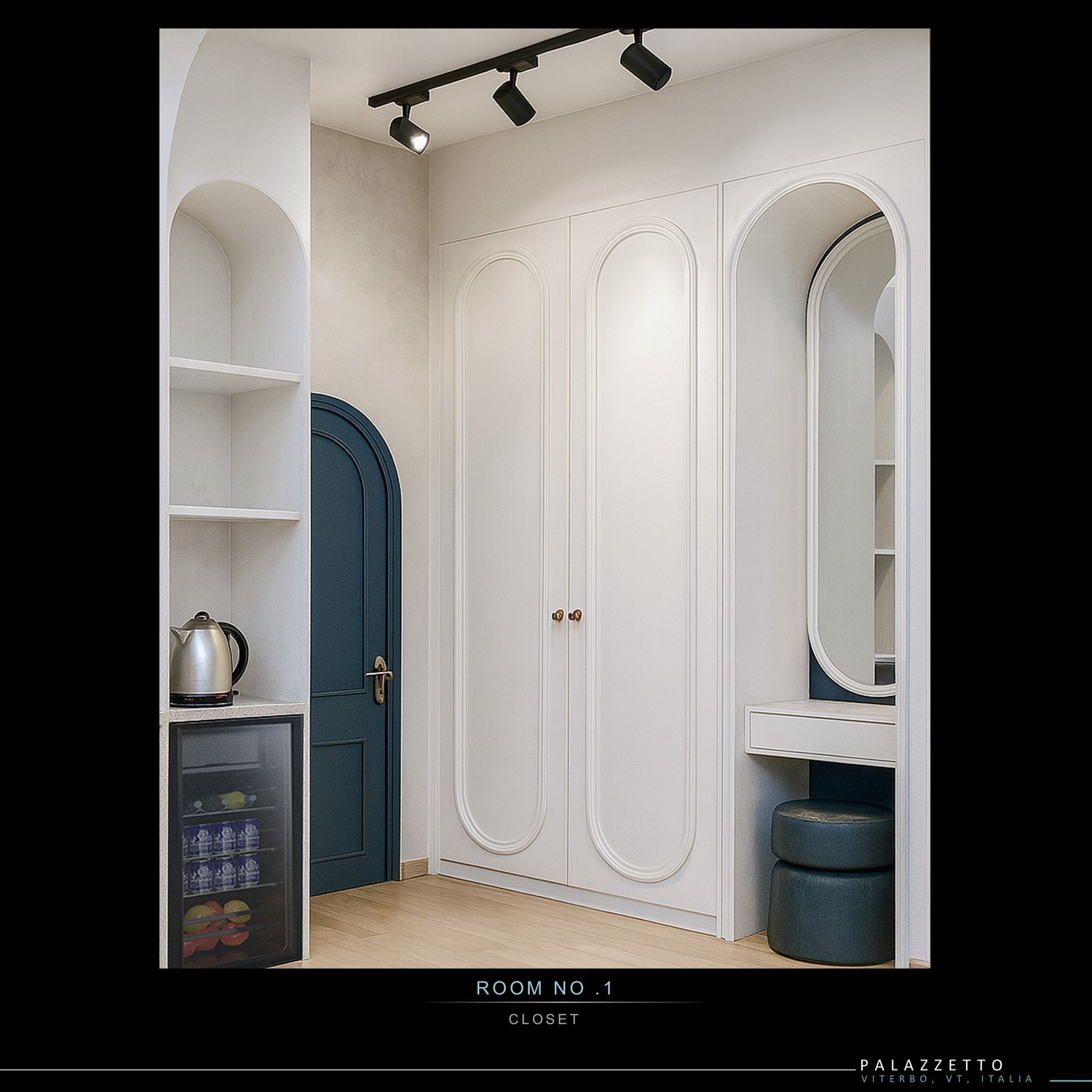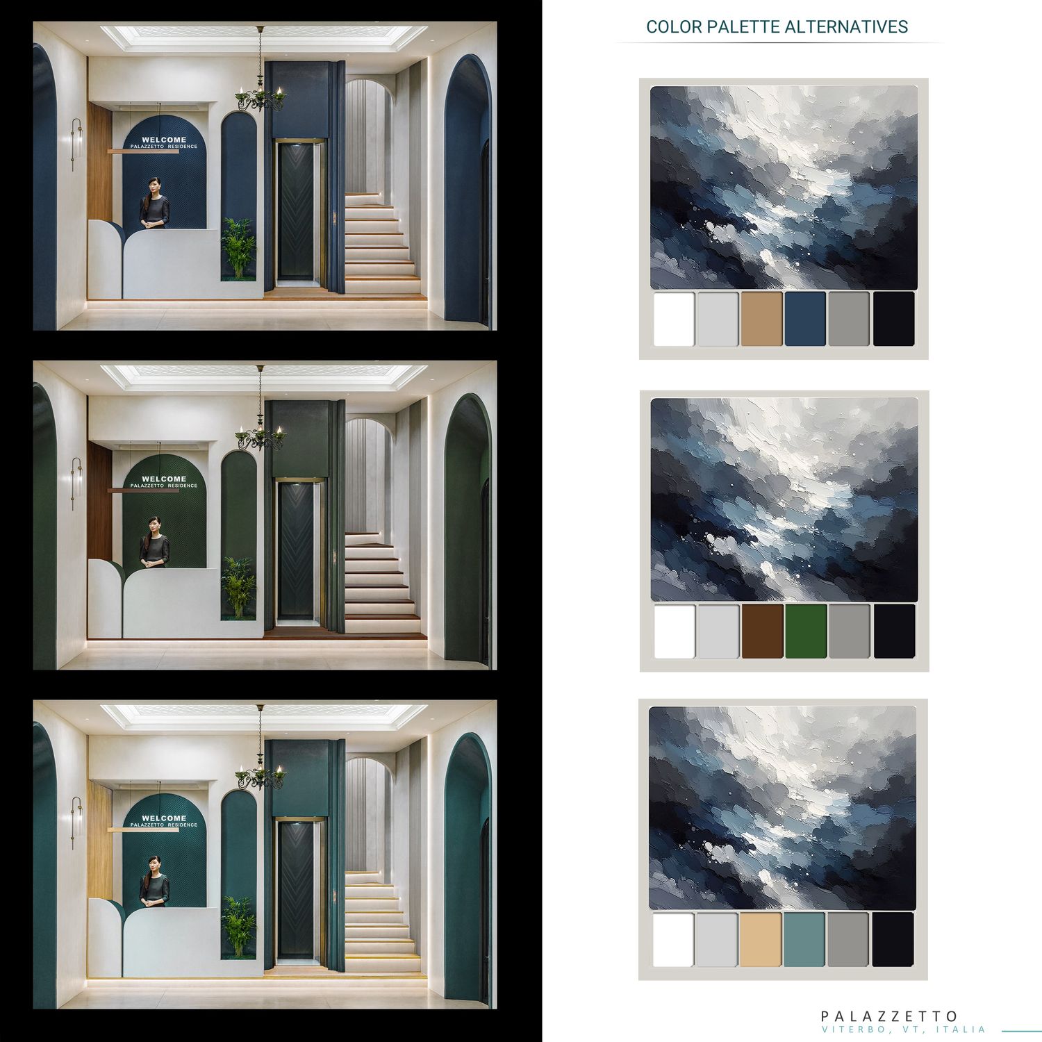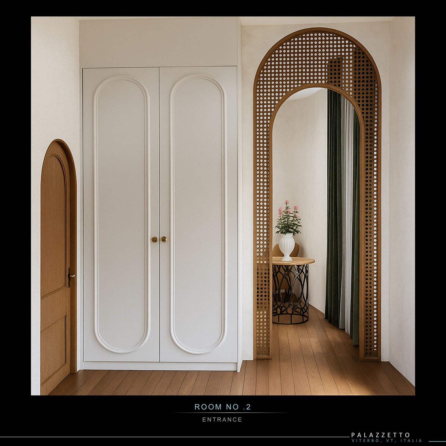 Per quanto riguarda gli interni, il nostro approccio progettuale si basa sulla creazione di ambienti rilassanti, minimalisti e pienamente coerenti con l’identità storica dell’immobile. Inoltre, il Suo interesse per l’inserimento di riferimenti cinematografici — in considerazione dell’attività della proprietà nel settore del cinema — è stato pienamente considerato e integrato negli aspetti visivi, grafici e di illuminazione, prevedendo anche la possibilità di ulteriori sviluppi futuri.