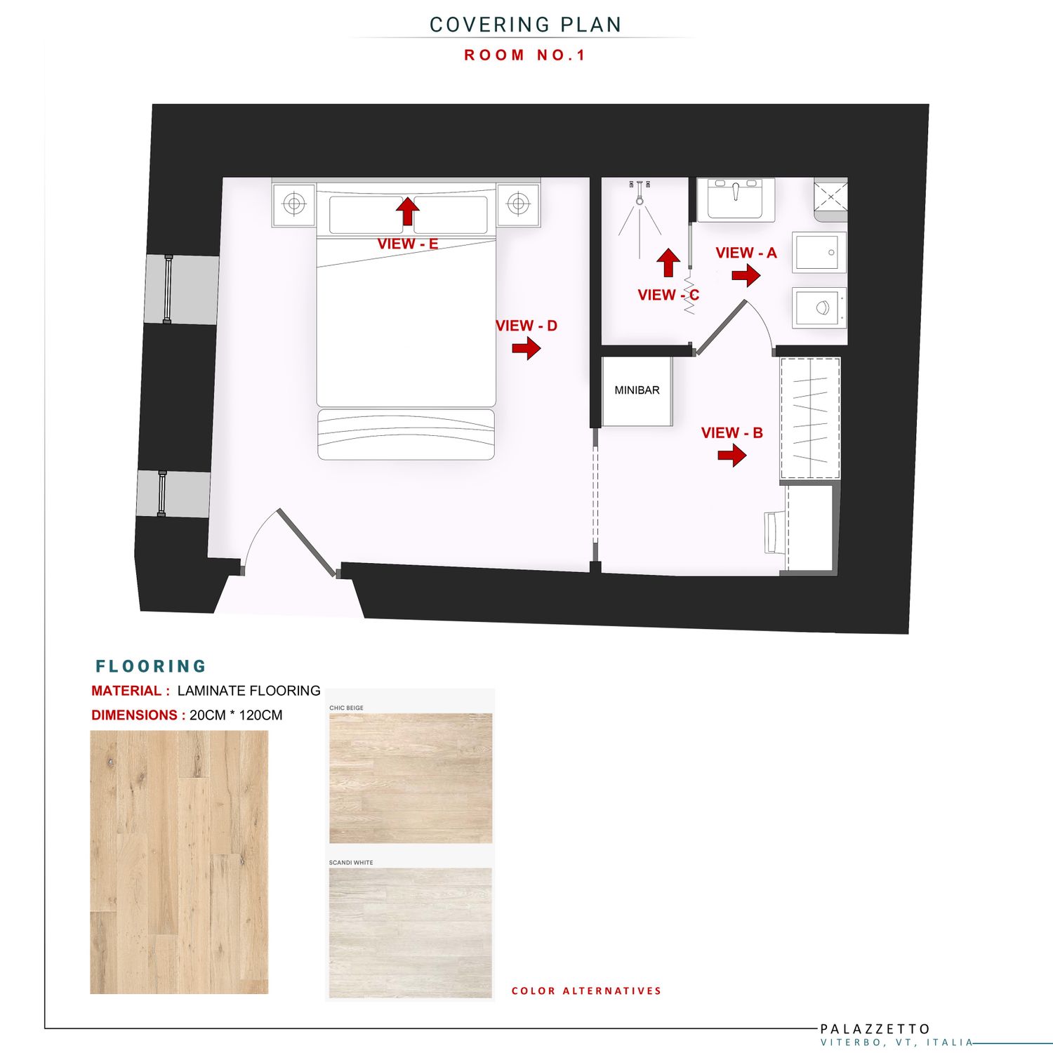 All’interno del progetto sono state previste cinque camere con caratteristiche, stili e capacità differenti al fine di: