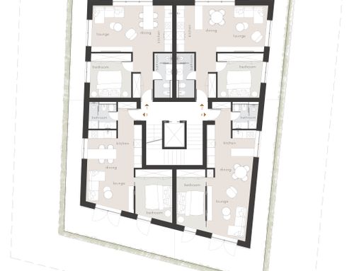 ITA: Demolizione di fabbricato esistente, con ricostruzione di palazzo residenziale, composto da 4 unità bilocali a piano x 3 piani (ultimo piano sottotetto) ed un piano, seminterrato, adibito a garage. I 4 bilocali vanno progettati per essere facilmente uniti nella formazione di sole 2 unità a piano. Le 2 unità a piano devono contenere 2 camere da letto (1 Metrimoniale ed una cameretta), 2 Bagni, sala e cucina.