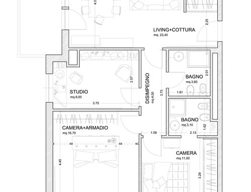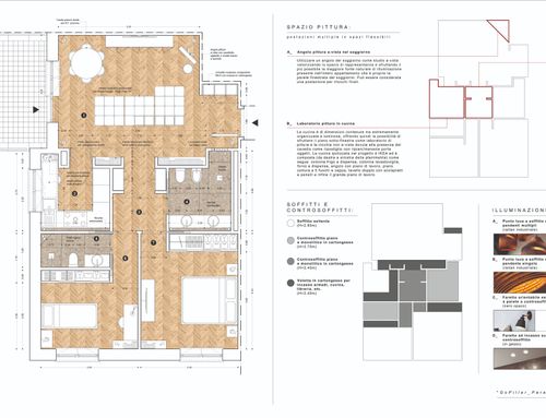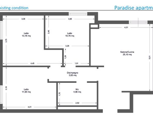 So I ask you architects the miracle: a room for me, one to accommodate a small second bathroom, a living area with a kitchen and, somewhere, a space to create and paint.