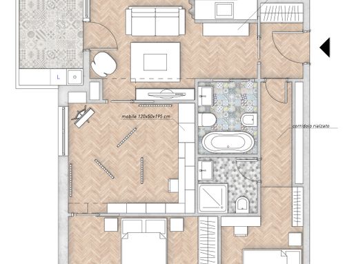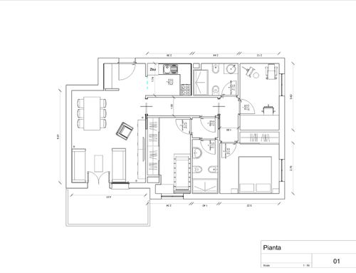 This apartment in the past was the classic living room and two rooms, then renovated in its current form: living room with kitchenette, three rooms not very large, balcony.