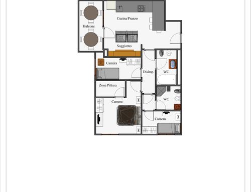 Il problema è che lo spazio è poco, vorrei di nuovo una cucina e non solo un angolo cottura, anche se annessa al soggiorno, ed ho diversi hobby, tra cui la pittura che occupa prepotentemente mq!