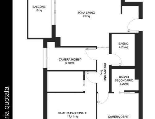 Mi è stato chiesto dei pilastri, ebbene, non ce ne sono, sono tutti esterni al perimetro, la pianta è stata fatta da un amico ingegnere ed è fedele alla realtà, in verità questo palazzo è la propaggine di un altro che è tutto uffici, quindi immagino sia stato un ripensamento del costruttore, forse erano tutti uffici, quindi con spazi interni da prevedere modulabili, e poi hanno deciso di fare una parte uffici e l’altra appartamenti, insomma, la planimetria è giusta. L'altezza interna dell'appartamento è di m 2.80.