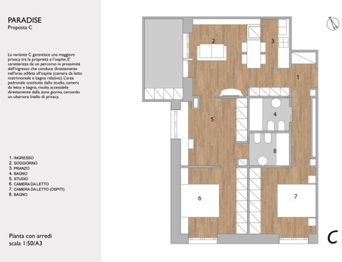 Ora posso provvedere alla ristrutturazione di questi spazi, sapendo che sono solo per me, ma prevedendo una camera per ospitare (magari a pagamento? E quindi facilmente ‘isolabile’?)