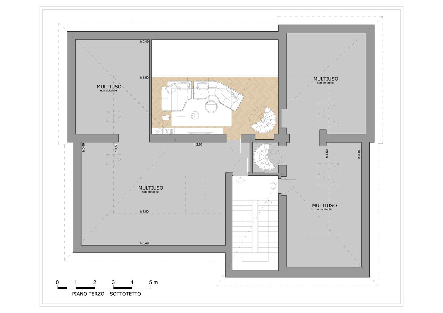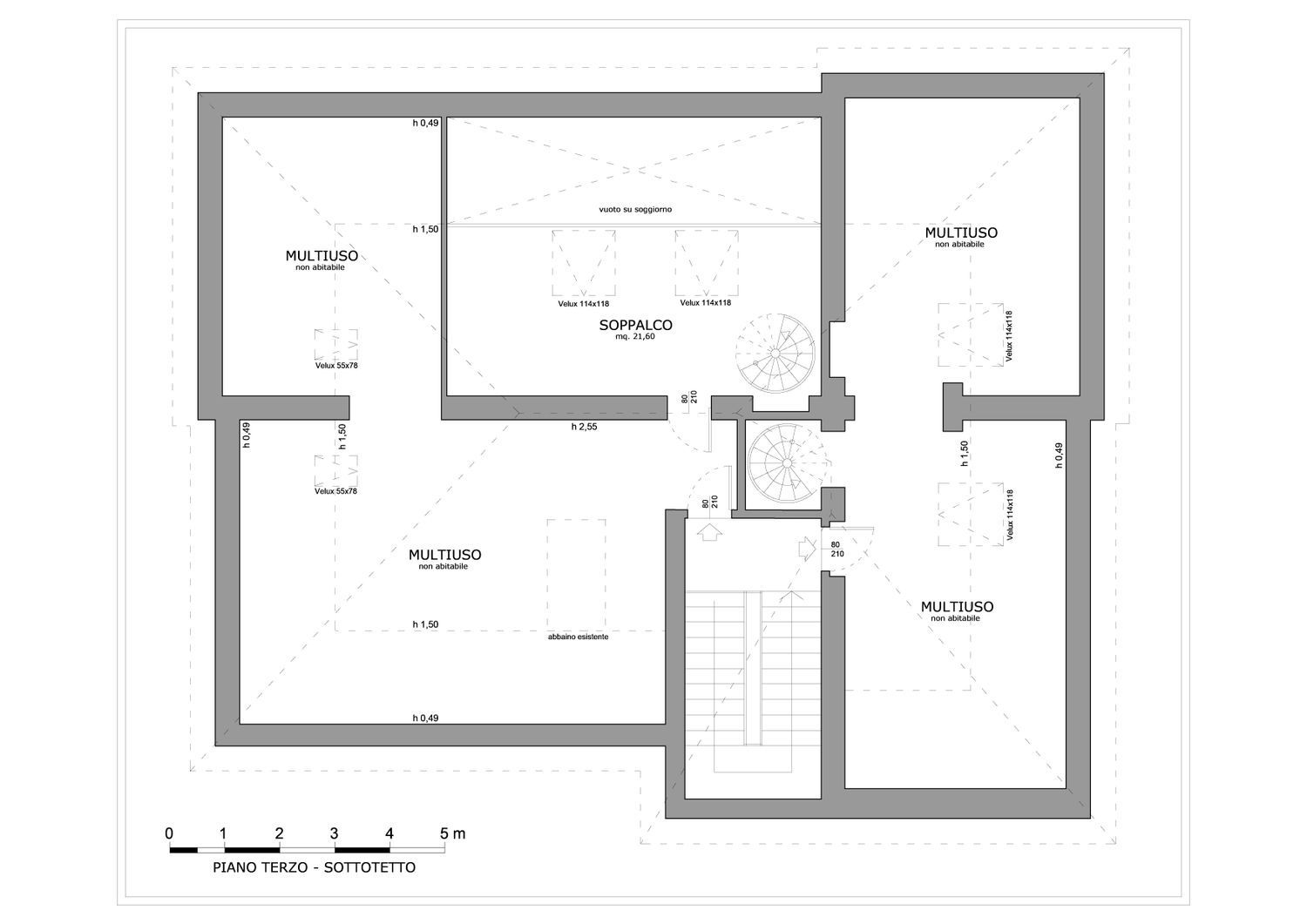 NB: si è scelto di mantenere comunque gli accessi al piano terzo dalla scala comune, nell'ottica di poter prevedere, in caso di opzione per la variante B, un futuro nuovo frazionamento con la realizzazione di due unità abitative mansardate indipendenti.