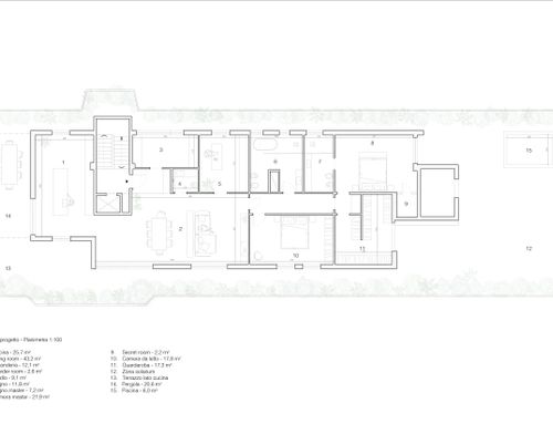AREA 14: WE WOULD LIKE TO BUILD AS INDICATED IN THE PLAN, A SOLAR PERGOLA THAT BECOMES A DINING AREA WHICH CAN BE ACCESSED DIRECTLY FROM THE KITCHEN.
