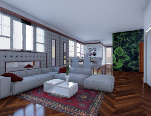 WE ARE A 40 YEAR OLD COUPLE WHO LOVES SPACES AND MINIMALIST DESIGN. THE PENTHOUSE WE PURCHASED IS COMPLETELY TO BE RESTORED BOTH IN THE INTERIOR (ABOUT 190MQ) AND EXTERIOR (ABOUT 290 SQM - TERRRAZA ON THE FLOOR THAT SURROUNDS THE WHOLE HOUSE). 'USING WALLPAPER TO CREATE FUNNY AND COLORFUL STITCHES FOR EXAMPLE JUNGLE FANTASIES OR DESIGN LIKE "FORNASETTI"). THE FLOOR WITH THE EXCEPTION OF THE BATHROOMS (ROOM N 6 AND N 7) AND OF THE LAUNDRY (ROOM N, 3) WILL BE IN HUNGARIAN HERRINGBONE PARQUET (ATTACH PHOTOS WHERE YOU CAN UNDERSTAND THE SHADE OF COLOR).