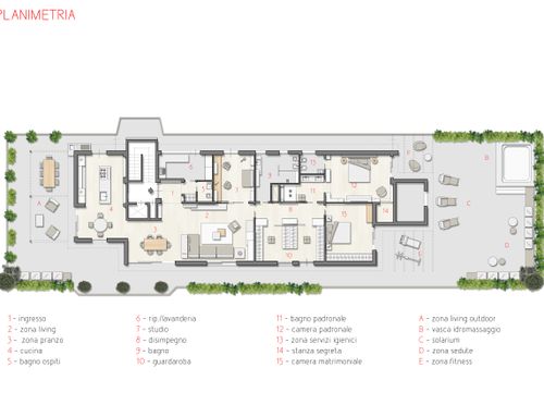 ZONA 14: CI PIACEREBBE REALIZZARE COME INDICATO IN PIANTA, PERGOLA SOLARE CHE DIVENTASSE ZONA PRANZO DA CUI ACCEDERE DIRETTAMENTE DALLA CUCINA.