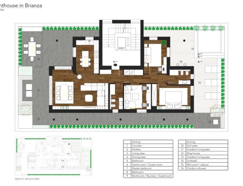Terrazza parte living tavolo ed eventuale griglia, zona notte minipiscina e sdraio/relax.