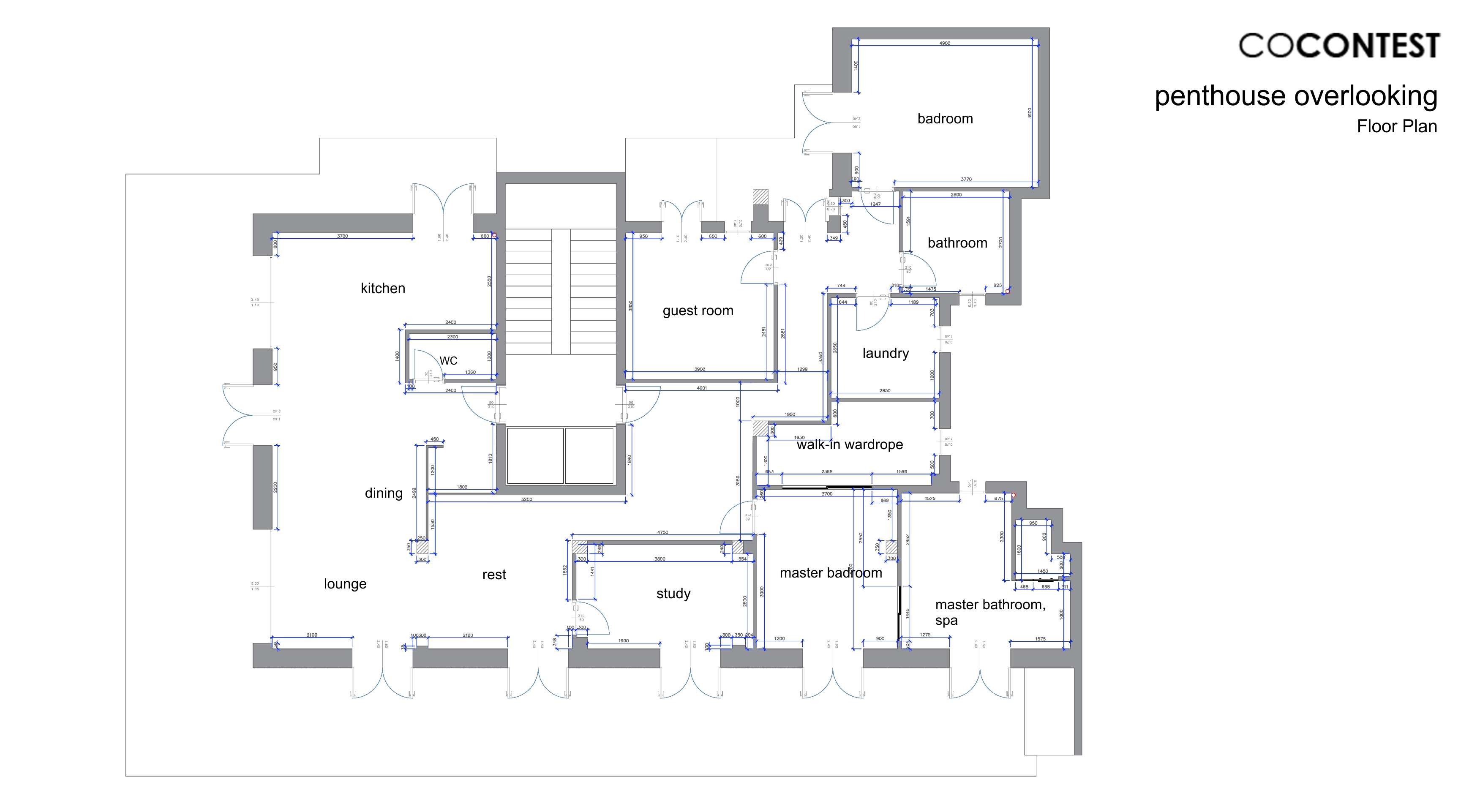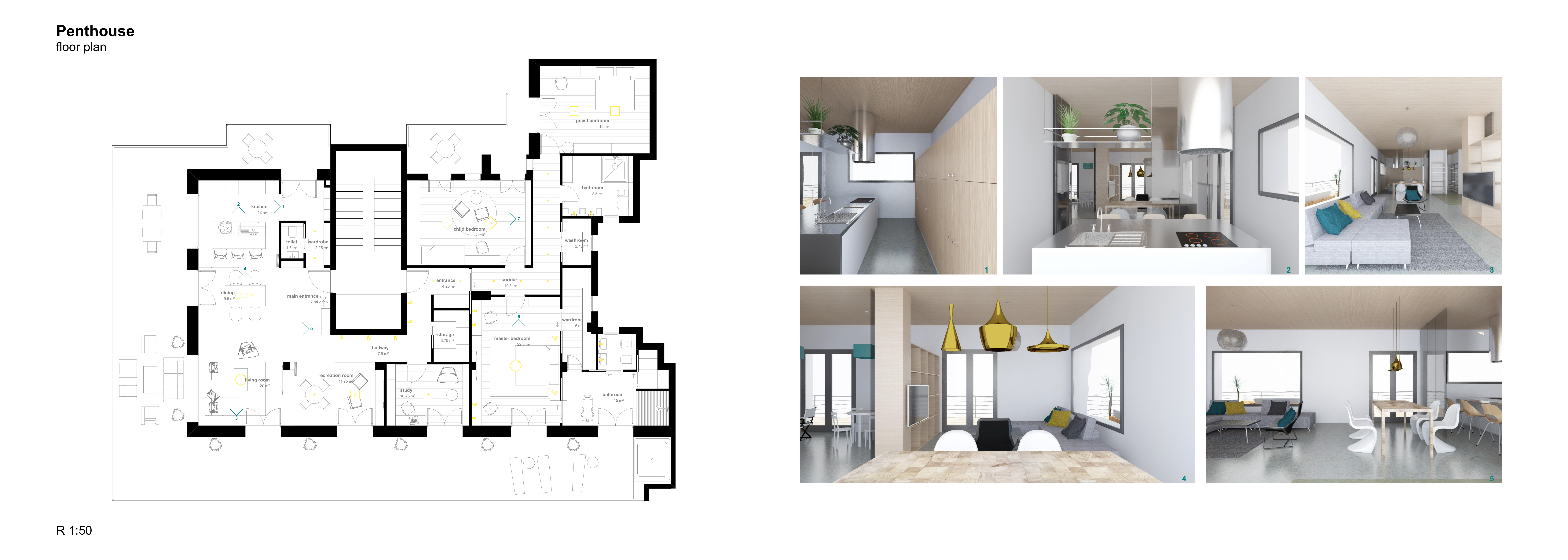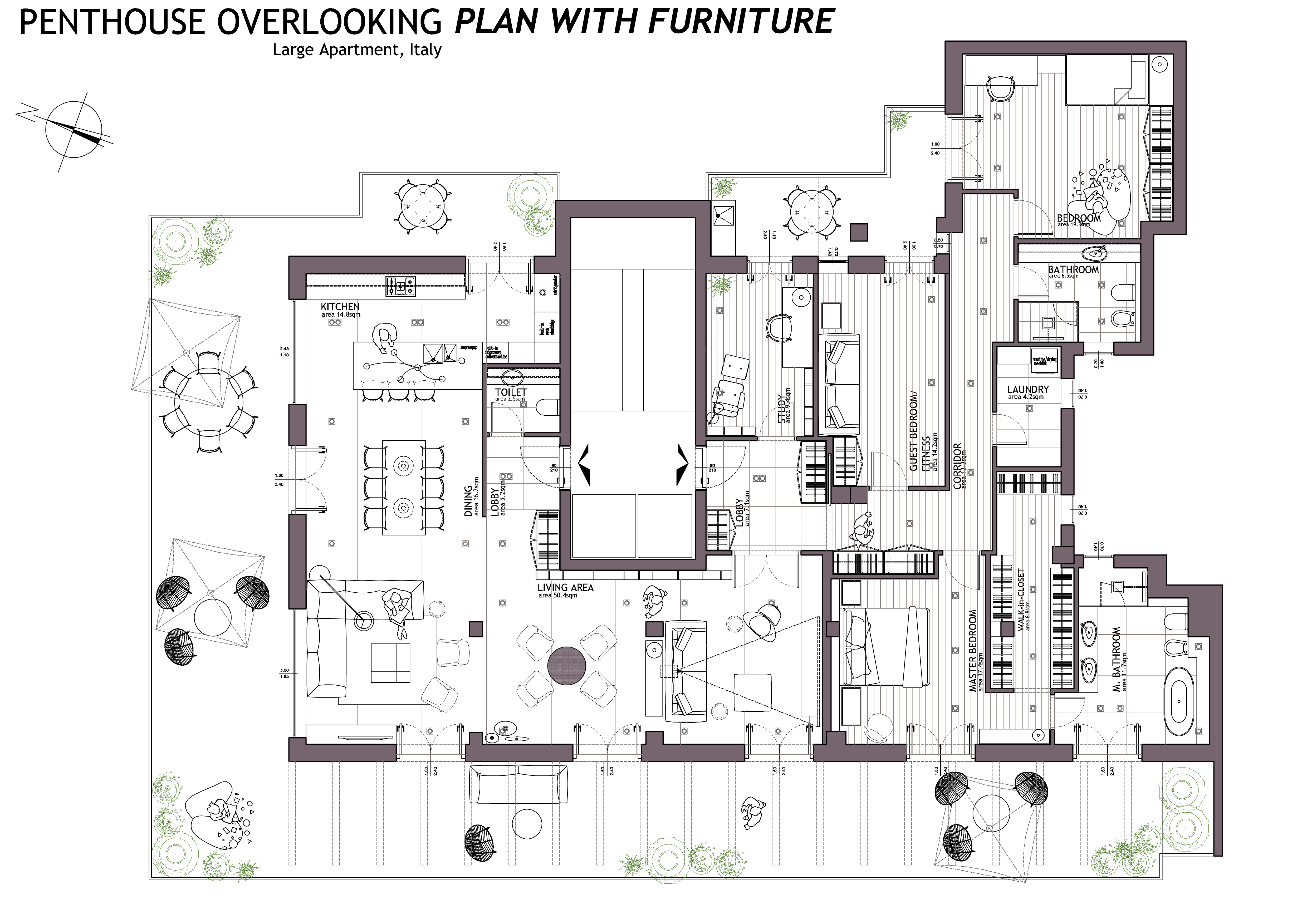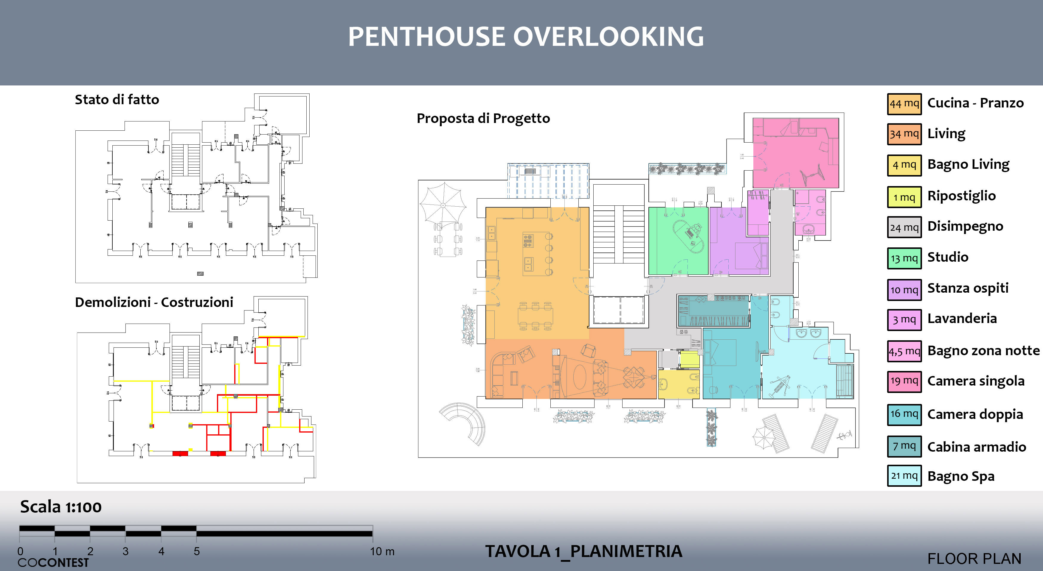Gli altri ambienti sono: studio disimpegnato dalla zona notte, camera padronale con grande cabina armadio e bagno, una camere da letto per bambino, una camera palestra-ospiti, lavanderia-stireria, piccolo bagno zona living.