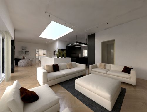We are a couple who bought an apartment of about 170 sqm on the 7th floor and 8th floor (top floor) with a terrace of about 145 sqm. The apartment’s height is 300 cm throughout the apartment (flat roof pitch ).