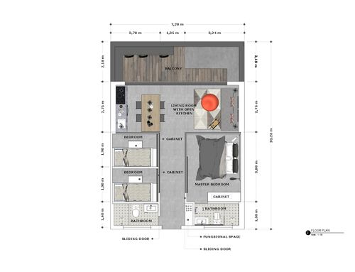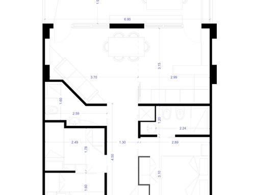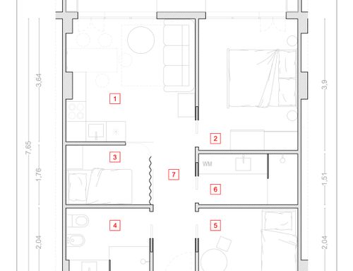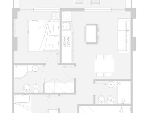 We are a family of 4 and we want to completely renovate the house to make the most of the space and make the apartment functional, modern and ready to host friends. For this we expect small rooms even with bunk beds. Feel free to use your imagination in the arrangement of spaces and without regulatory restrictions.