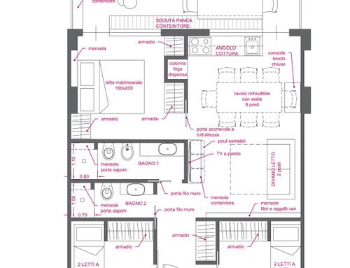 Siamo una famiglia di 4 persone e vogliamo ristrutturare completamente la casa per sfruttare al massimo gli spazi e rendere l'appartamento funzionale e pronto ad ospitare anche degli amici. Per questo ci aspettiamo stanze piccole anche con letti a castello.