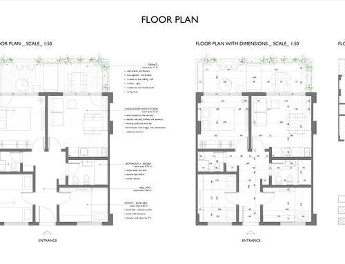 - bathroom 2: toilet, small sink and small shower at least 60 cm X 60 cm