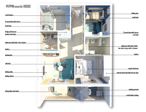 Nonostante sia una casa di mare e vi sia un terrazzo abitabile è necessario prevedere un tavolo all'interno (anche a scomparsa) che dia la possibilità di mangiare all'interno nelle giornate più fredde o piovose.