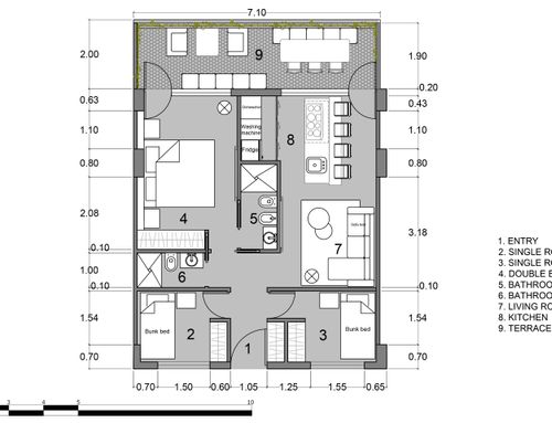- 2 (two) single rooms: one with two single beds (preferably) or bunk beds and with a small wardrobe / chest of drawers. The other also only with a bed or a bunk bed and a small wardrobe / chest of drawers