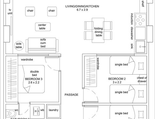 Although the apartment is modest in size, we would like to make the most of the space even at the expense of comfort. For this reason the contest will be won by those who manage to comply with all the requirements described below: