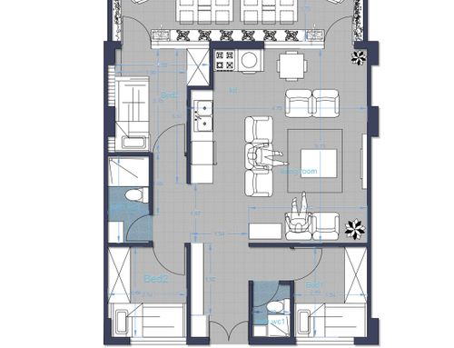 Importante: la característica del apartamento son las ventanas altas que recorren todo el ancho de la casa. Se muestran en las fotos adjuntas y podrían acomodar los dormitorios y baños individuales.