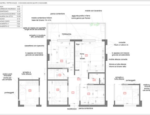Sarebbe molto gradito sfruttare al massimo gli spazi in modo da riuscire ad ottenere anche armadi piccoli nelle camere e dove possibile.