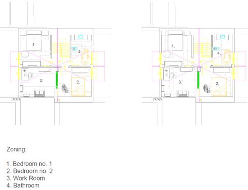 MASTER BEDROOM: I’d like a bedroom with walk-in-closet since the room is quite wide. I’d really like to have a comfortable and wide bathroom here. We also need a laundry with an ironing spot (if possible). There is also a second – and smaller – bathroom that would be our guest bathroom.