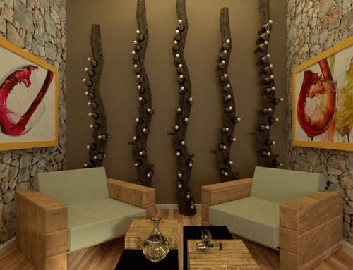 SOGGIORNO: una cantina bar molto caratteristica con pietra e legno ed illuminata al posto della scrivania ufficio che si vede nella planimetria allegata . il divano chaiselongue attaccato alla parete  che si possa allungare per trasformarlo in un letto di fortuna matrimoniale, e , dove si vede divano in planimetria allegata con tappeto per terra sostituire con sala da pranzo con relativo tavolo ,sedie e mobili consigliati possibilmente spaziosi; mobile basso per tv da 65 / 75 pollici posto di fronte al divano; area stufa a pellet e' gia inserita e la vorrei decorare con sasso a visto tipico rustico di montagna, illuminazione importante con luci calde dove voi ritenete opportuno.I Divani li gradirei di colore grigio.