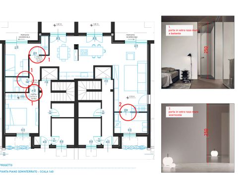 Si tratta di un recupero di piano seminterrato ottenuto tramite la fusione di due taverne all' interno di una villa bifamiliare; la fusione è possibile mediante la demolizione del muro in cemento armato tra le due taverne per una luce di apertura massima pari a 2,00/2,50 m.