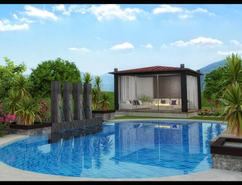 voglio qualcosa di molto semplice ed essenziale , possibilmente poca manutenzione , un spogliatoio con docce, vicino casa una veranda con divani , un braciere, e un'area ombreggiata , misura piscina 7x12 , google maps. https://goo.gl/maps/sRrExsKbVey.