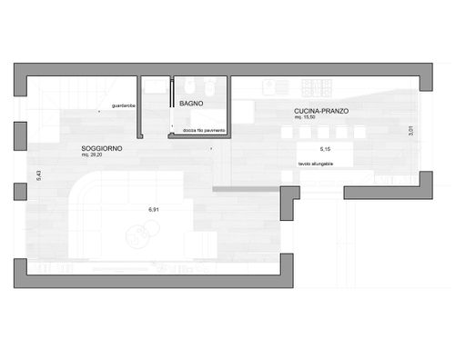 In bagno, che dobbiamo ancora realizzare, vorremmo un piccolo lavandino nell'anti bagno e doccia e sanitaria.