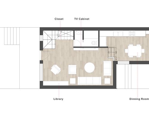 We’d like to close the space under the stairs to create a small cupboard for shoes and object. We’d also want to realize a close storage closet to put jackets and bags (maybe right when you enter on the left?).