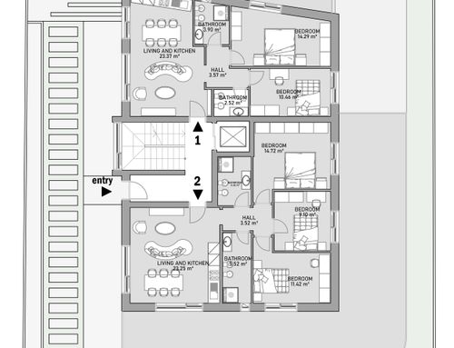 D’ispirazione libera, rimodulare le planimetrie in 2 ipotesi d’appartamento per piano per il piano terra ed il primo, unendo i due appartamenti lato strada in un’unica unità trilocale (Camera matrimoniale, camera, 2 bagni sala e cucina); unendo i 2 appartamente lato mare in un’unica unità quadrilocale (3 Camere da letto, 2 bagni, sala e cucina); ed un unico appartamento per il piano attico, unendo tutte le quattro unità. Progettare l’arredamento degli esterni e degli interni del fabbricato oggetto del DWG allegato. Usare le misure dei muri perimetrali, esterni ed interni del progetto. Non modificare gli androni, gli ascensori, i garage, gli esterni dei giardini, e le parti condominiali. Usare tonalità calde e compatibili con fabbricato a ridosso della spiaggia. Usare verde decorativo, che va curato in ogni minimo dettaglio, e prediligere piante e fiori tipiche della zona geografica che non necessitino di eccessiva manutenzione. Sviluppare le planimetrie 3d con lo stile e grafica di quelli allegati, non usare metodiche diverse, le planimetrie 3d devono essere sviluppate sulla base delle planimetri rimodulate, ovvero 2 al piano terra con giardino, 2 al primo piano con terrazzo ed 1 al piano attico. Sviluppare i rendering delle fabbricato esterno collocato nell’area, i rendering delle unità immobiliari nelle sole tipologie rimodulate, come da richiesta, dei terrazzi e dei giardini privati e condominiali.