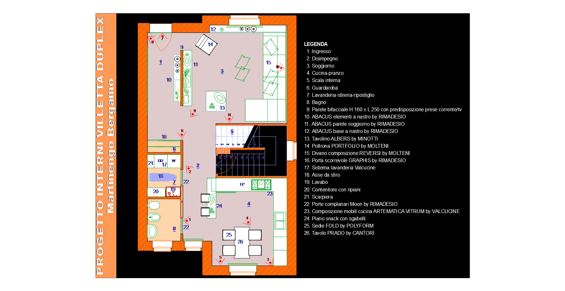 Il progetto tratta dell’arredo interno di una porzione di villa bifamiliare.