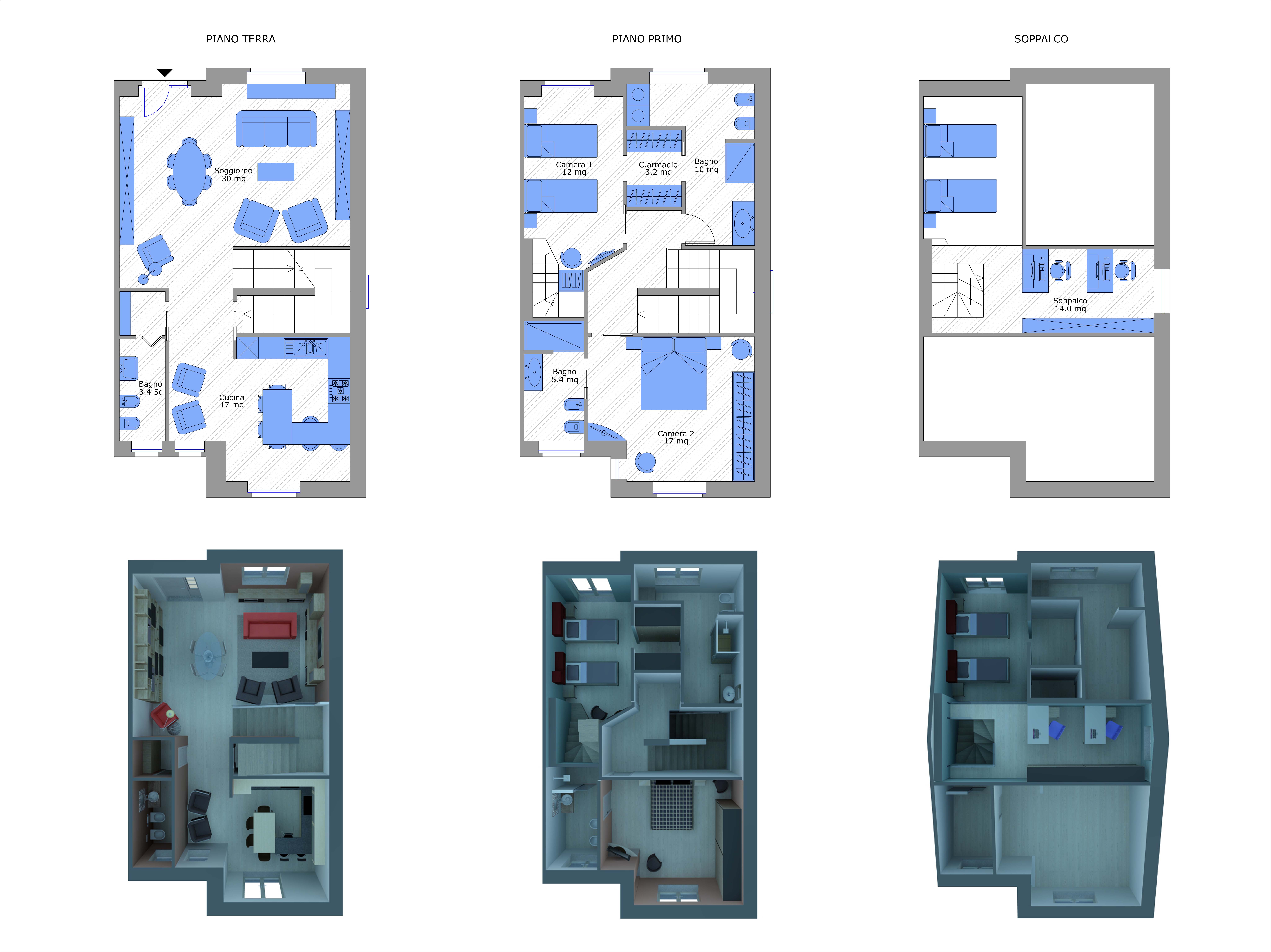 Il piano mansardato verrà utilizzato come stanza hobby, o connessa ad una camera da letto.