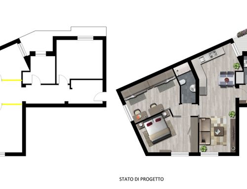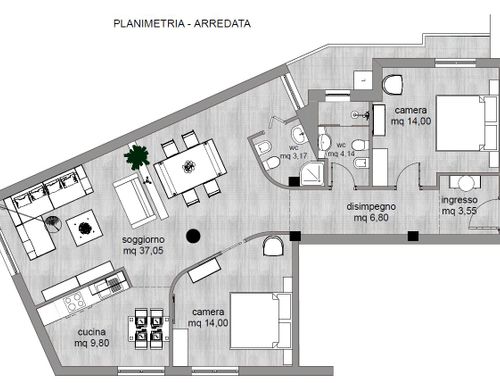 The apartment is located in via Nazzari, at the corner with via Marconi. The most beautiful area of the house is on the side of via marconi, where it could be nicer to have the living area. Unfortunately, the area at the back is not so attractive, so I wouldn't want to go on a long journey through the whole house but I don't have other solutions in mind to get to the bottom of the house. We are a company that deals with real estate investments and then resell the apartment at a value that is not more than 165,000. The project that pays in that area is the 3 rooms + two bathrooms or the 4 rooms with two bathrooms. The window on Via Nazzari has a balcony that is not marked in the plan. I enclose videos to make it clearer.