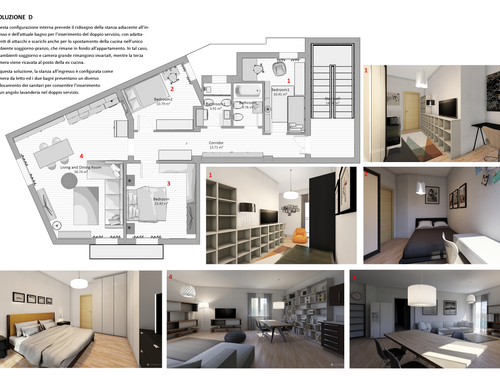 L'appartamento si trova in via Nazzari, angolo via Marconi. La zona più bella della casa sta sul lato di via marconi, dove potrebbe essere più bello avere il living. Purtroppo la zona sul retro non è così attraente, quindi non vorrei fare un corridoio lungo che arrivi fino al living attraversando tutta la casa ma non ho in mente altre soluzioni per arrivare al fondo della casa. Noi siamo una società che si occupa di investimenti immobiliari e quindi dobbiamo rivendere l'appartamento ad un valore che non superi i 165000. Quindi dobbiamo contentere i costi (30k) di ristrutturazione per non perdere margine. Il progetto che paga maggiormente in quella zona è il 3 locali + doppi servizi o il 4 locali con doppi servizi. La finestra su via Nazzari ha un balcone che non è segnato in planimetria. Allego video per rendere più chiaro.