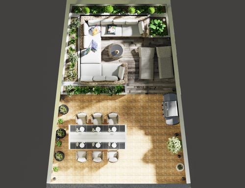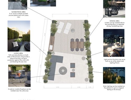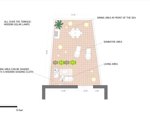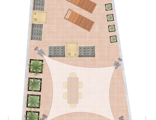Area is very windy so low plants and no umbrellas but I would like to add a shadowed area if there is a viable solution
