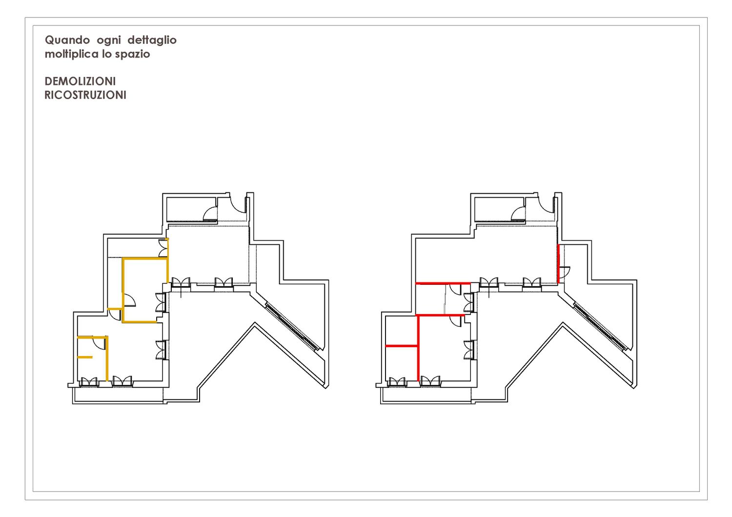 Lo spazio un tempo destinato al corridoio e alla camera singola viene così riconquistato e restituito alla convivialità , trasformando una sequenza chiusa di ambienti in un unico luogo aperto, fluido e ricco di luce.