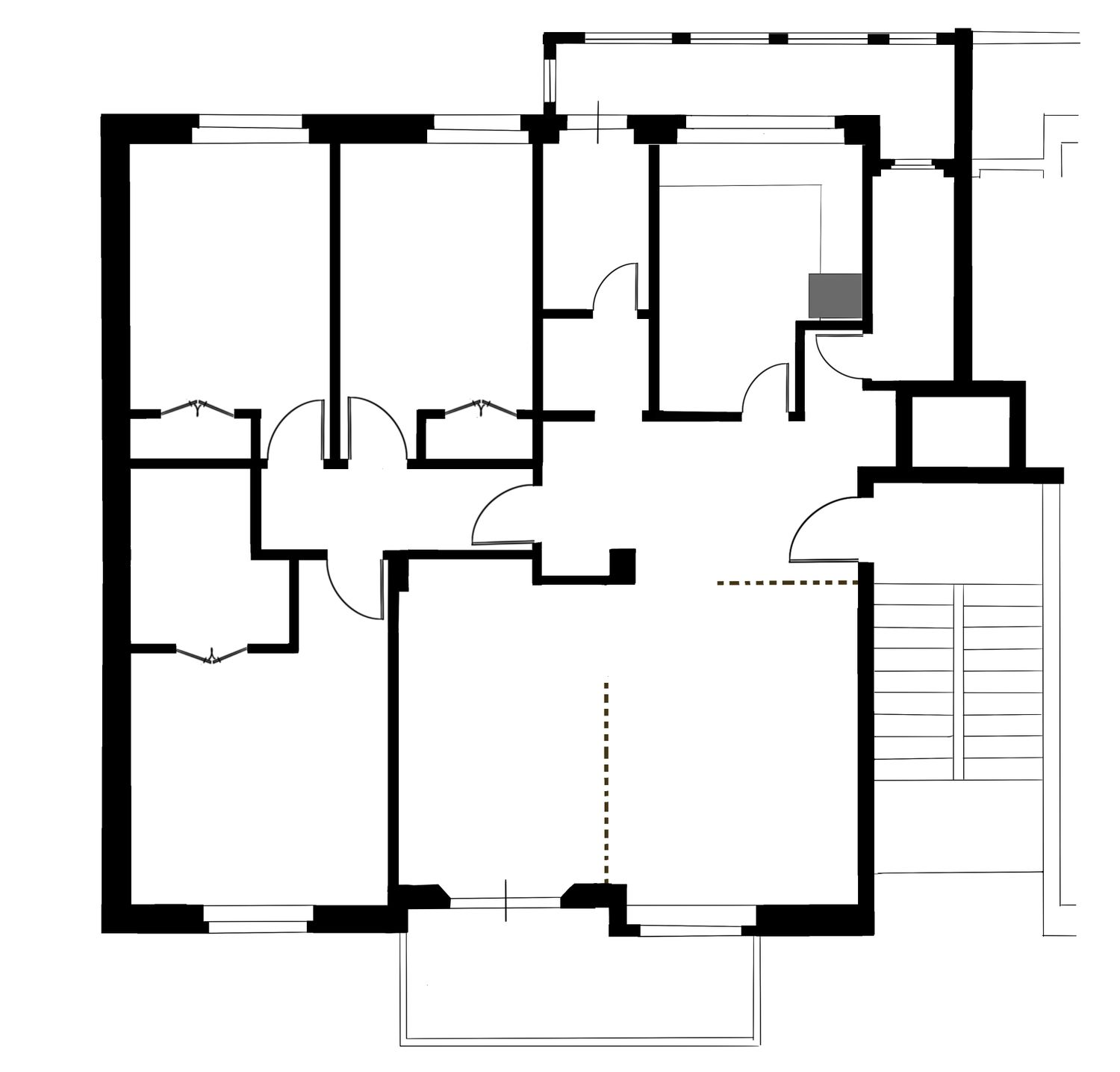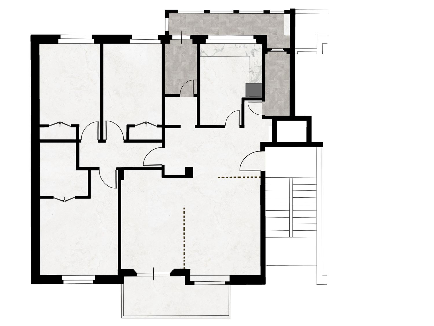 I am pleased to present the redesigned floor plan that addresses your spatial needs while enhancing functionality and modern aesthetics throughout.