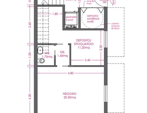 3. Mantenere l’attività commerciale che è già presente al piano terra. È necessario garantire un piccolo bagno anche senza finestra (water e lavandino) ed un piccolo ambiente come spogliatoio/deposito e l’ingresso come l’attuale.