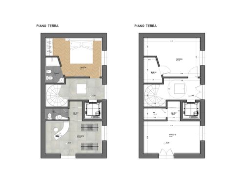 7. Due camere da letto con bagno per camera al piano primo. I bagni potrebbero non avere la finestra. Le camere da letto (matrimoniali) dovranno essere pensate con finestra e/o balconi e dovranno disporre di bagno (anche senza finestra).