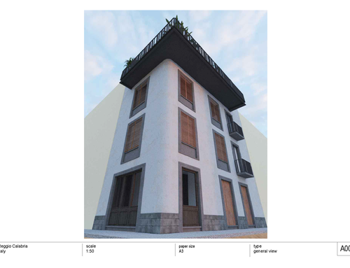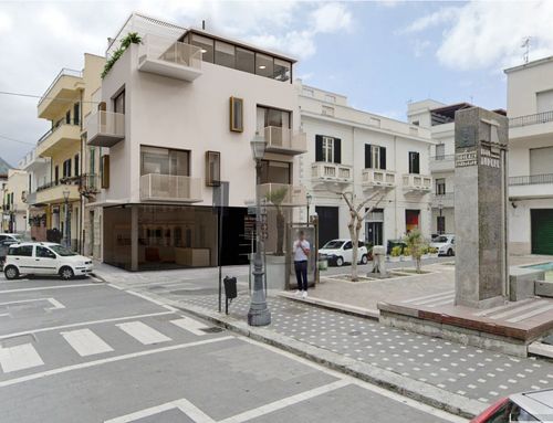 Our design concerns the demolition of a small building located in the center of a small seaside town in the seismic area of the province of Reggio Calabria. The Palazzotto is located in the city center, very close to the seaside resorts, in a very noisy area, especially in the summer. In the building next door, on the ground floor, in fact, there is a disco-club with very, very loud music until late at night.