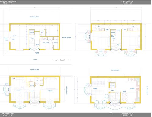 1. Designing a versatile building, in the sense that it must be designed to be used both as a b & b and as a family residence. The two forms of coexistence must be designed without interfering with each other. The first floor will be reserved for the b & b. It is essential that the second and third floors are used exclusively by the owners and must not allow access to the guests on the first floor.