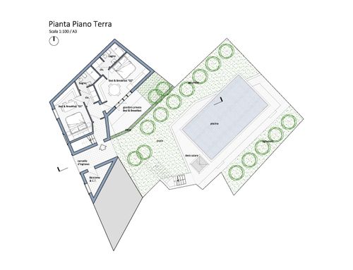 Le camere degli ospiti sarano accessibili da una porta al piano strada che dara’ accesso a camere al piano terra ed al primo piano. Quest'ultima zona sara' adibita ad affittacamere o B&B.
