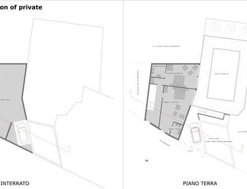 The second floor will be a patron area connected to the building through the porch for all its vertical development up to the second floor, with the sleeping area composed of 1 double bedroom with bathroom, 2 bedrooms, bathroom and hall area which will be exposes to the living area by balcony and stairs to linked to the 1st floor . Living area that will develop on the first floor for the upper part of the porch (the rest is 'B & B') with kitchen, living room, study, bathroom, laundry and terrace with external staircase leading to the garden twhich will be constitutes also entrance as written above.