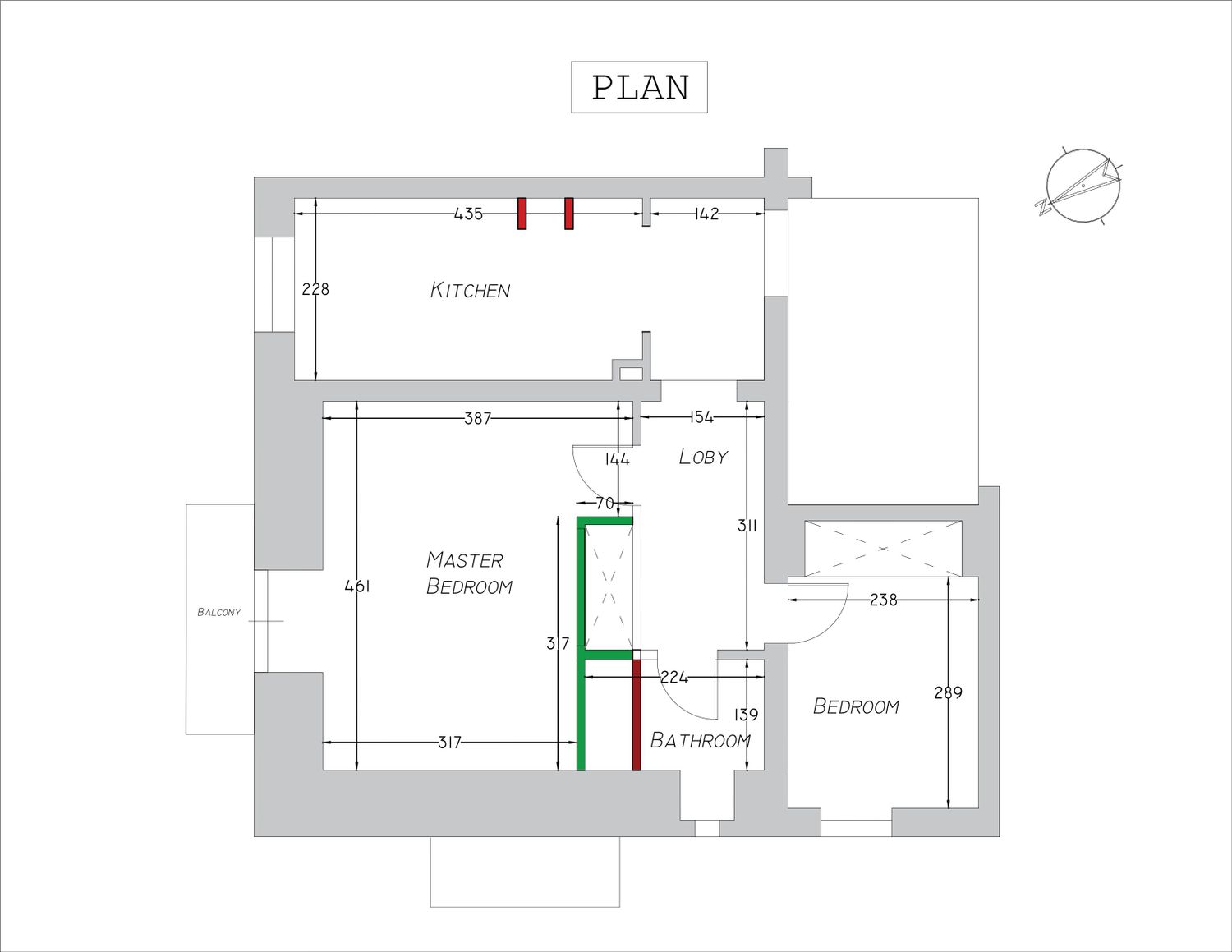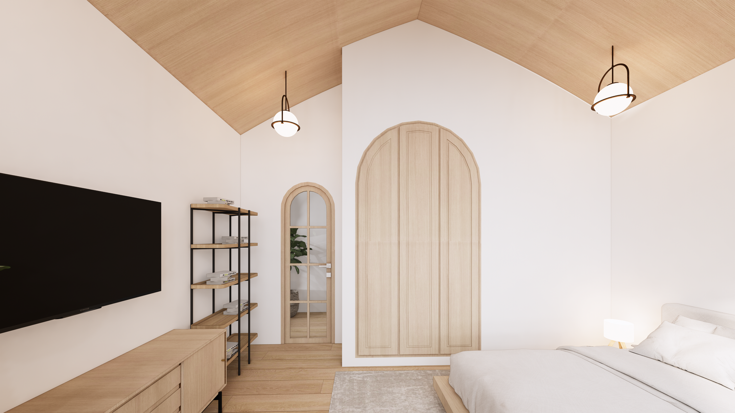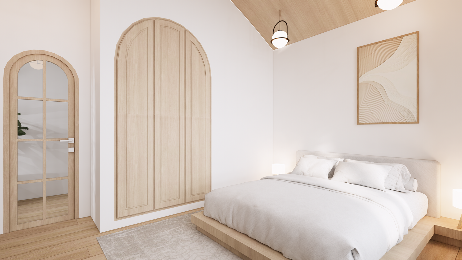 I didn't make many changes to the walls. I removed the fireplace in the kitchen and a small wall in the bathroom area to create more space for the laundry. I also added a wall in the master bedroom to expand the bathroom and create this built-in wardrobe.