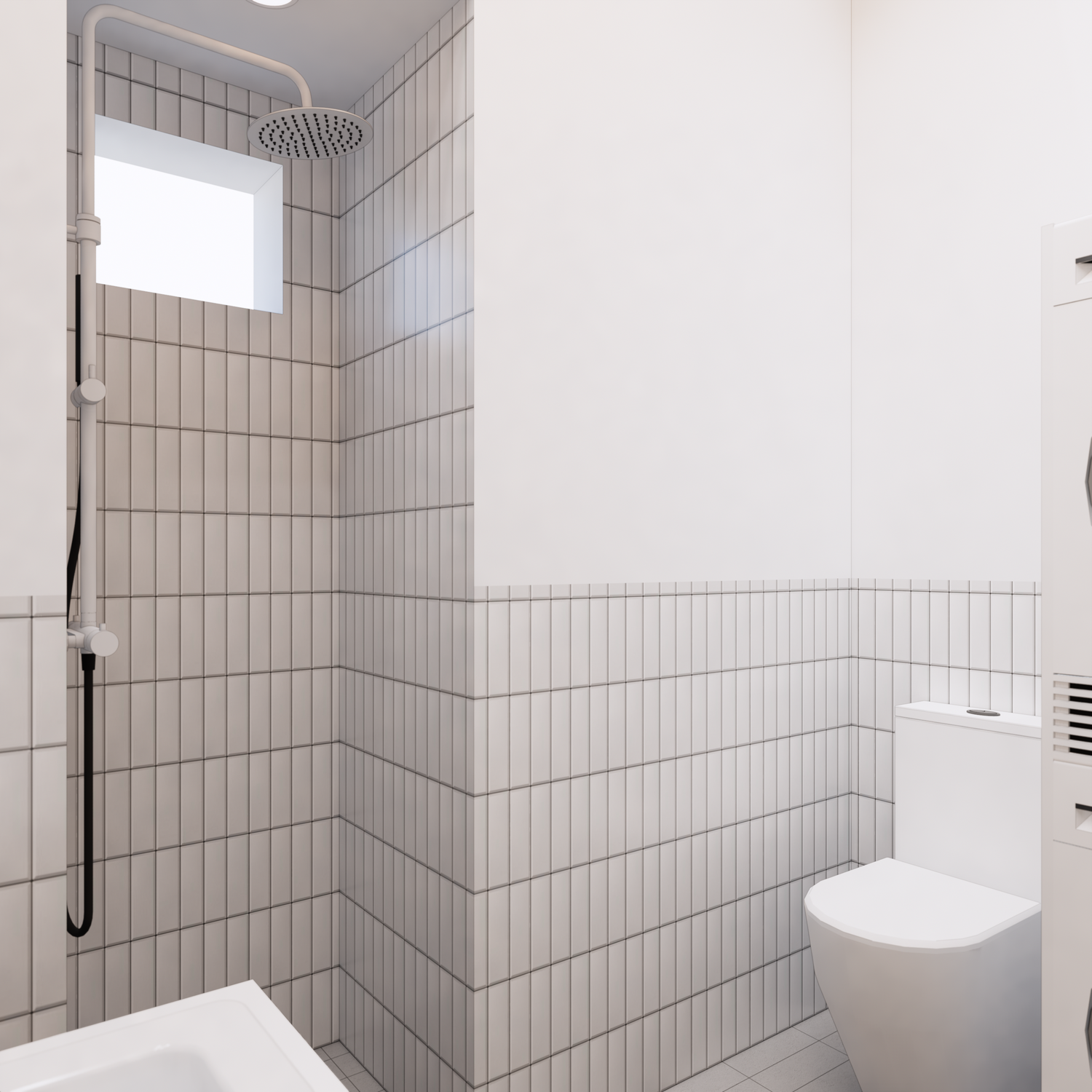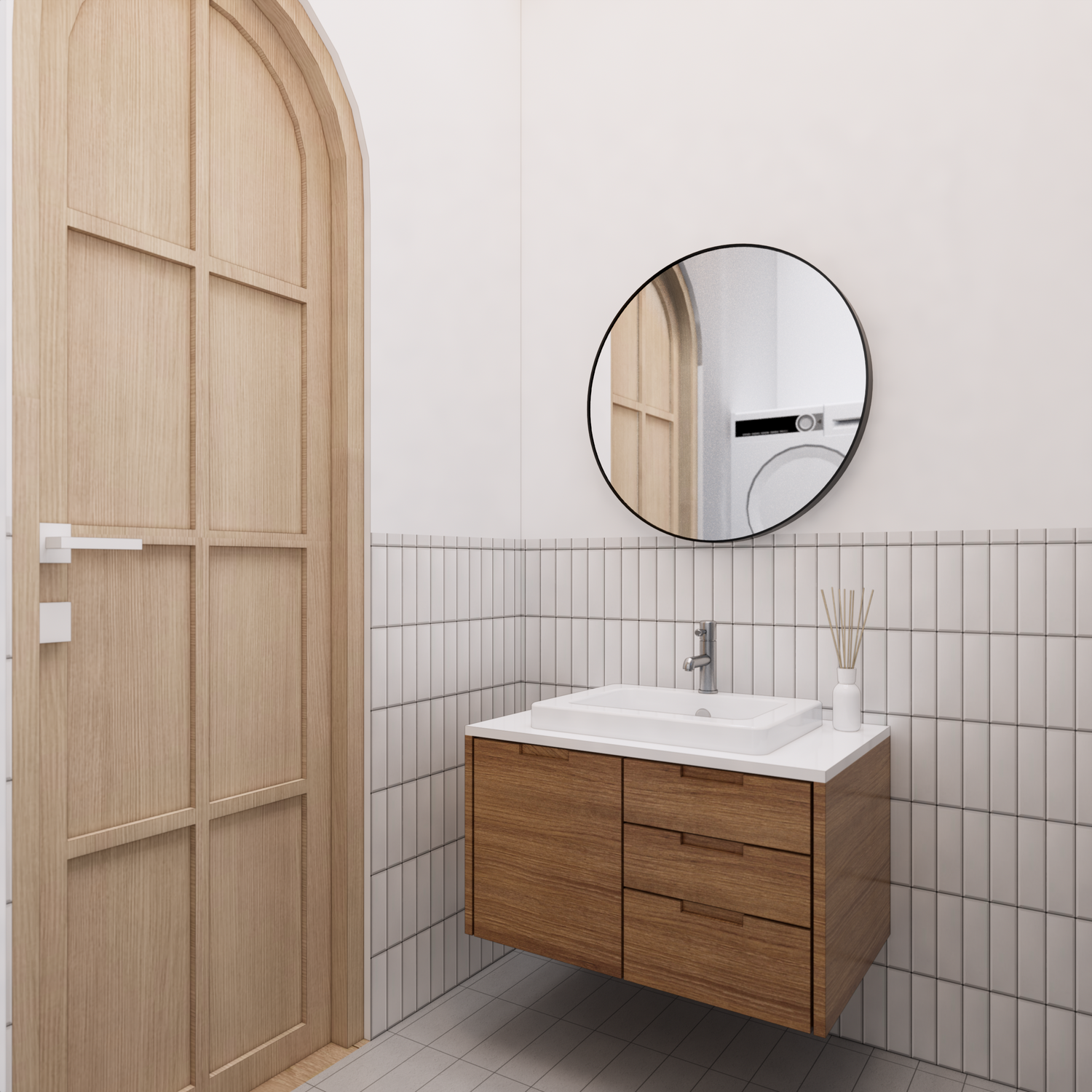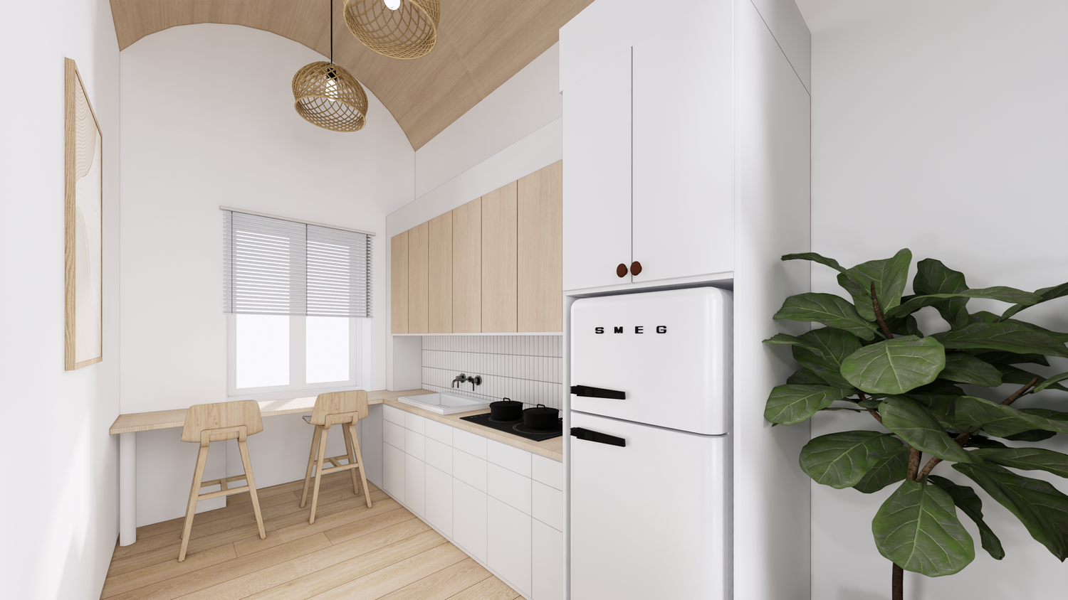 I didn't make many changes to the walls. I removed the fireplace in the kitchen and a small wall in the bathroom area to create more space for the laundry. I also added a wall in the master bedroom to expand the bathroom and create this built-in wardrobe.